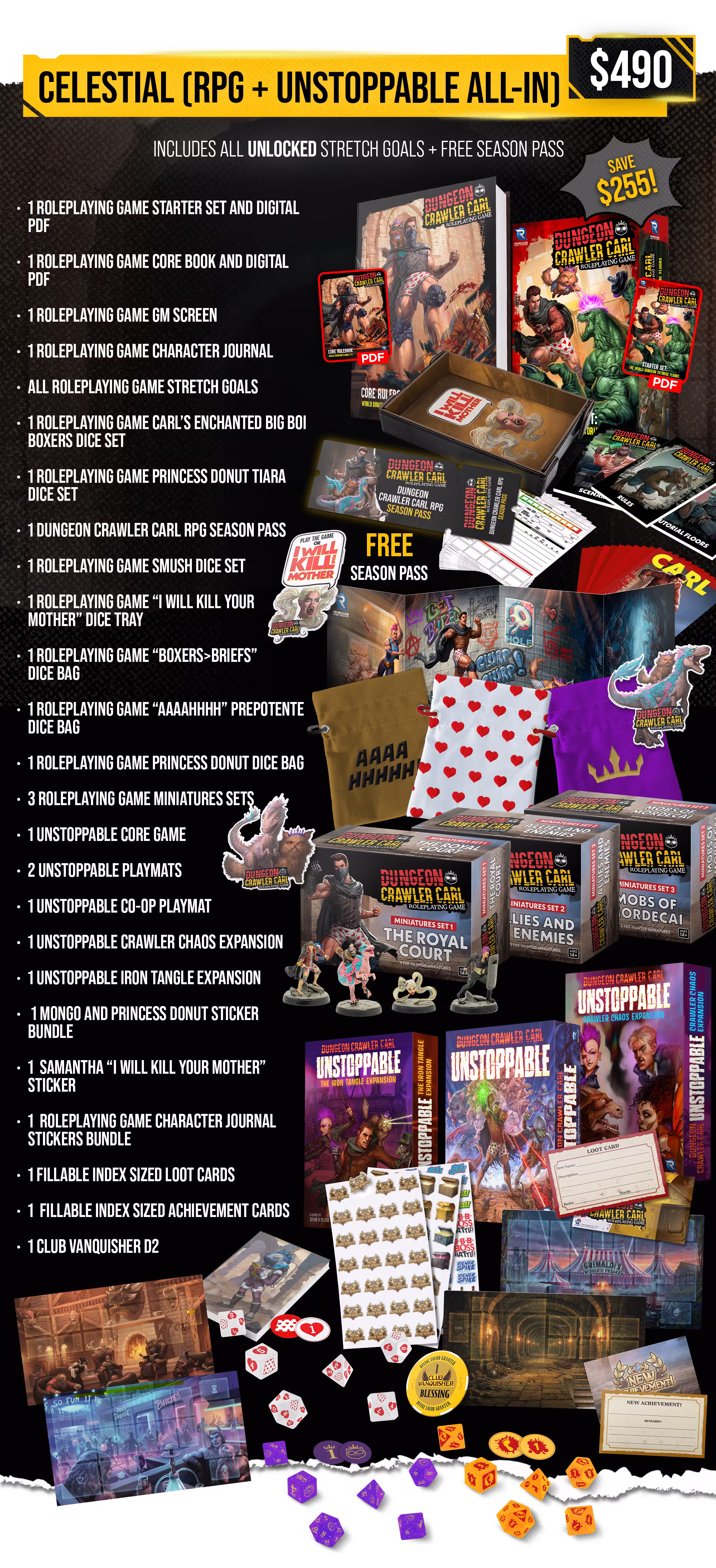 The System AI has deemed it necessary, and frankly overdue, to bring both the Dungeon Crawler Carl RPG and Dungeon Crawler Carl: Unstoppable to the table at the same time. Back one. Back both. Either way, you're getting more dungeon for your gold, and the viewers are absolutely losing their minds about it.