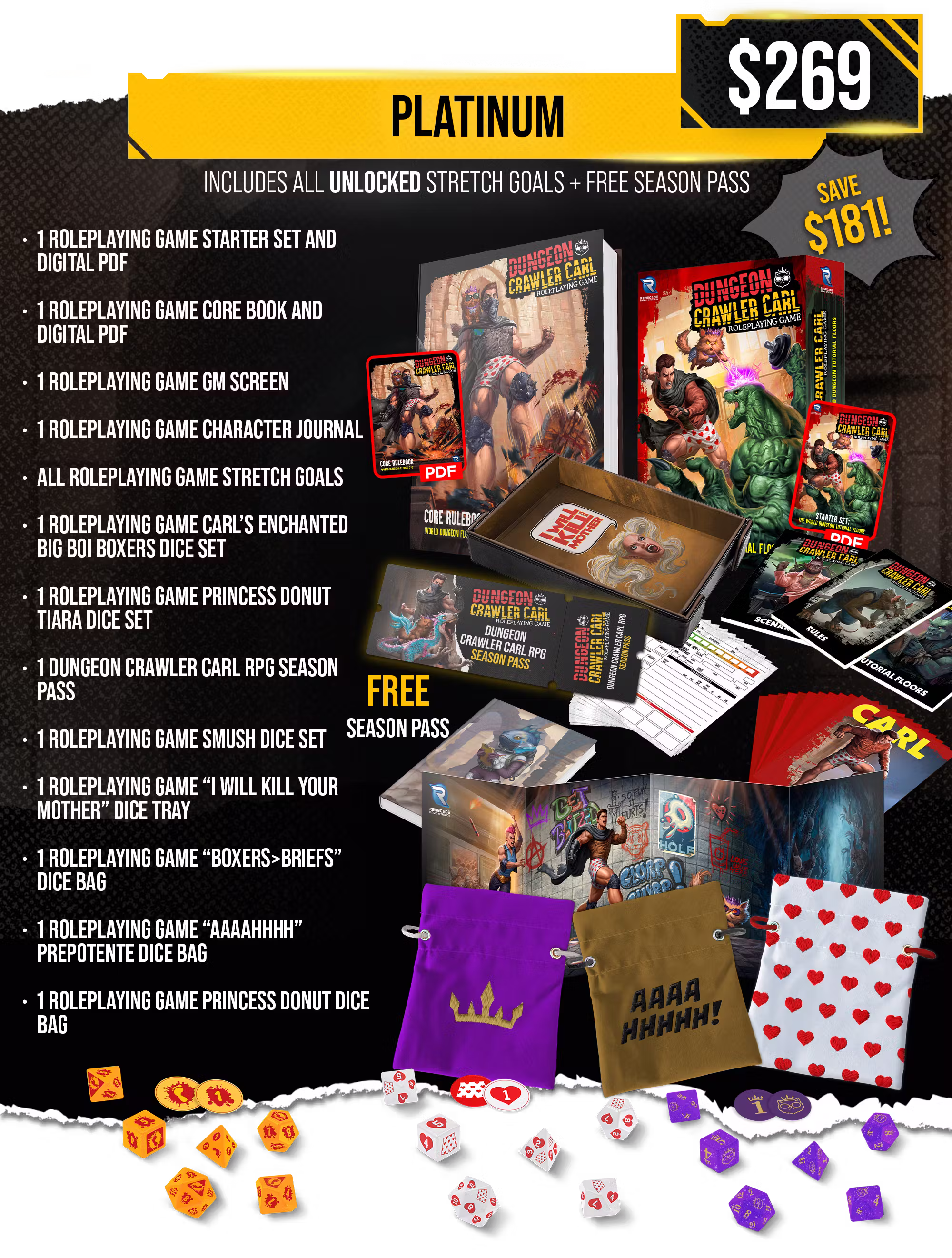 All subscribers to the Dungeon Crawler Carl RPG Season pass will receive 6 Digital Drops of new content throughout the season.