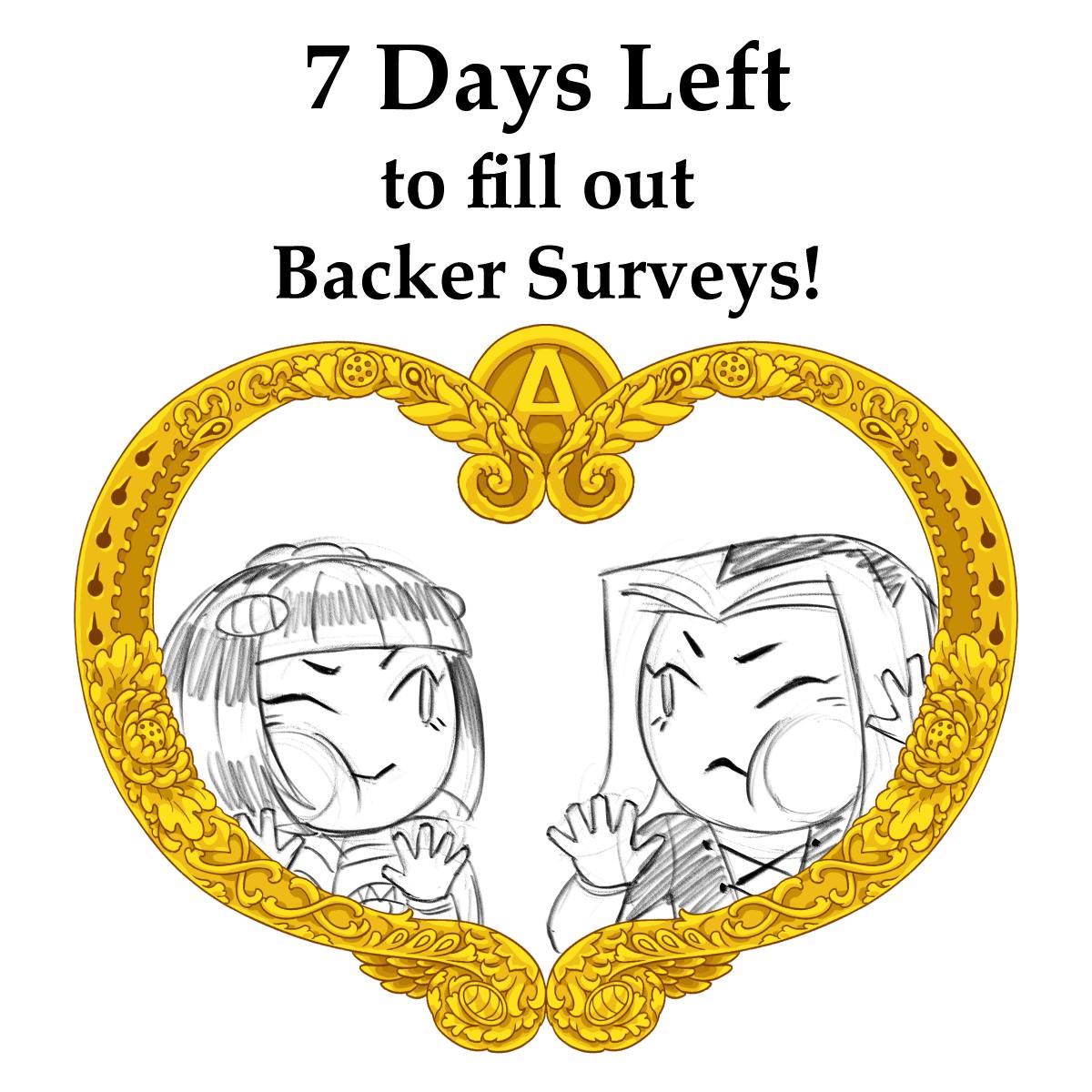 Project Update: 7 Day Left to complete Backer Surveys!