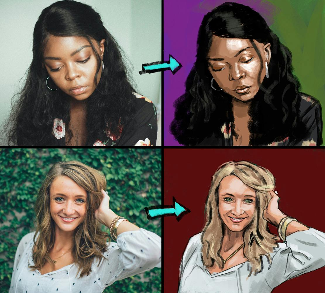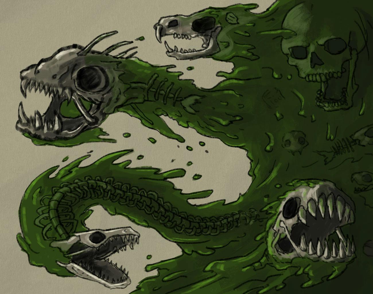Here's an example of the art style applied to portraiture...the top cultist is aligned with pain and rot, the bottom cultist is aligned with blood (which determines the background colors.)
