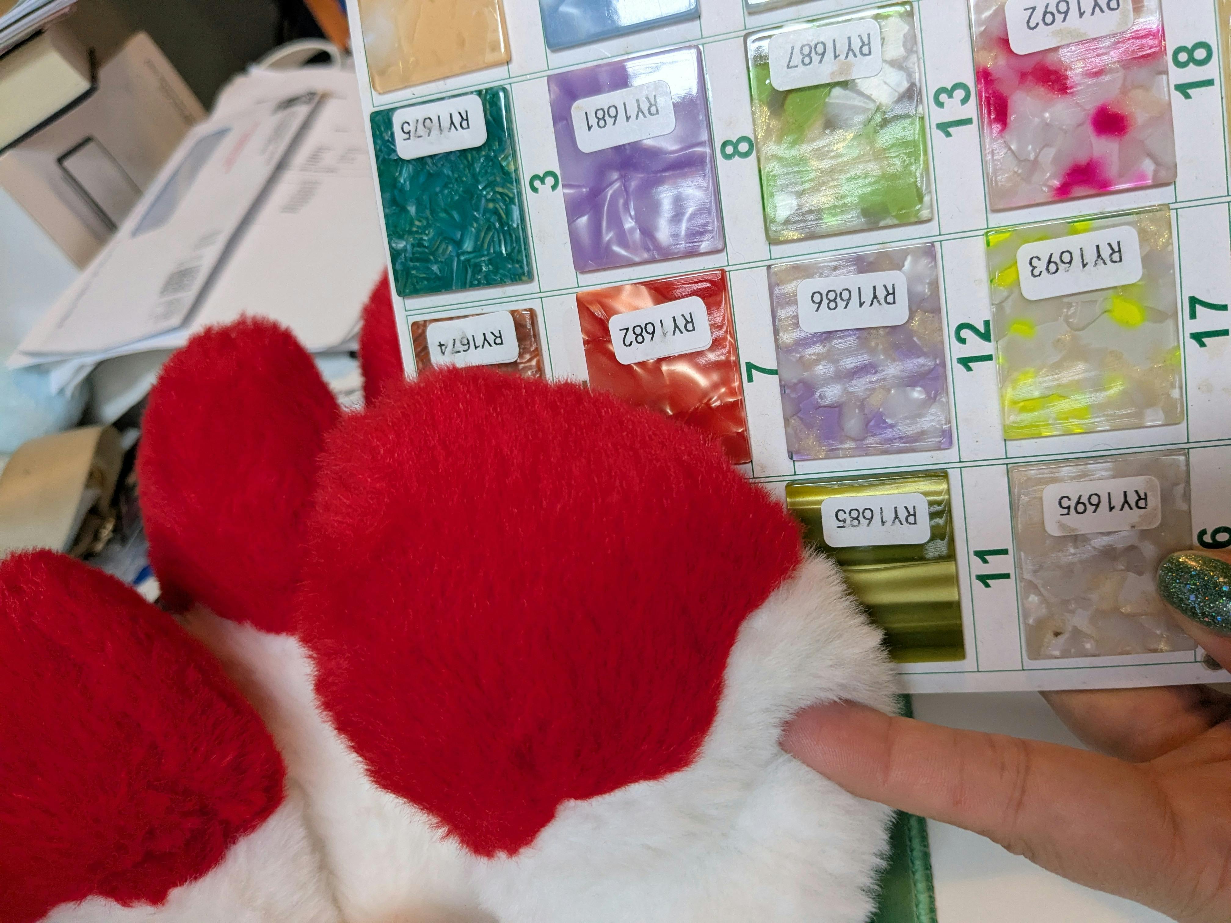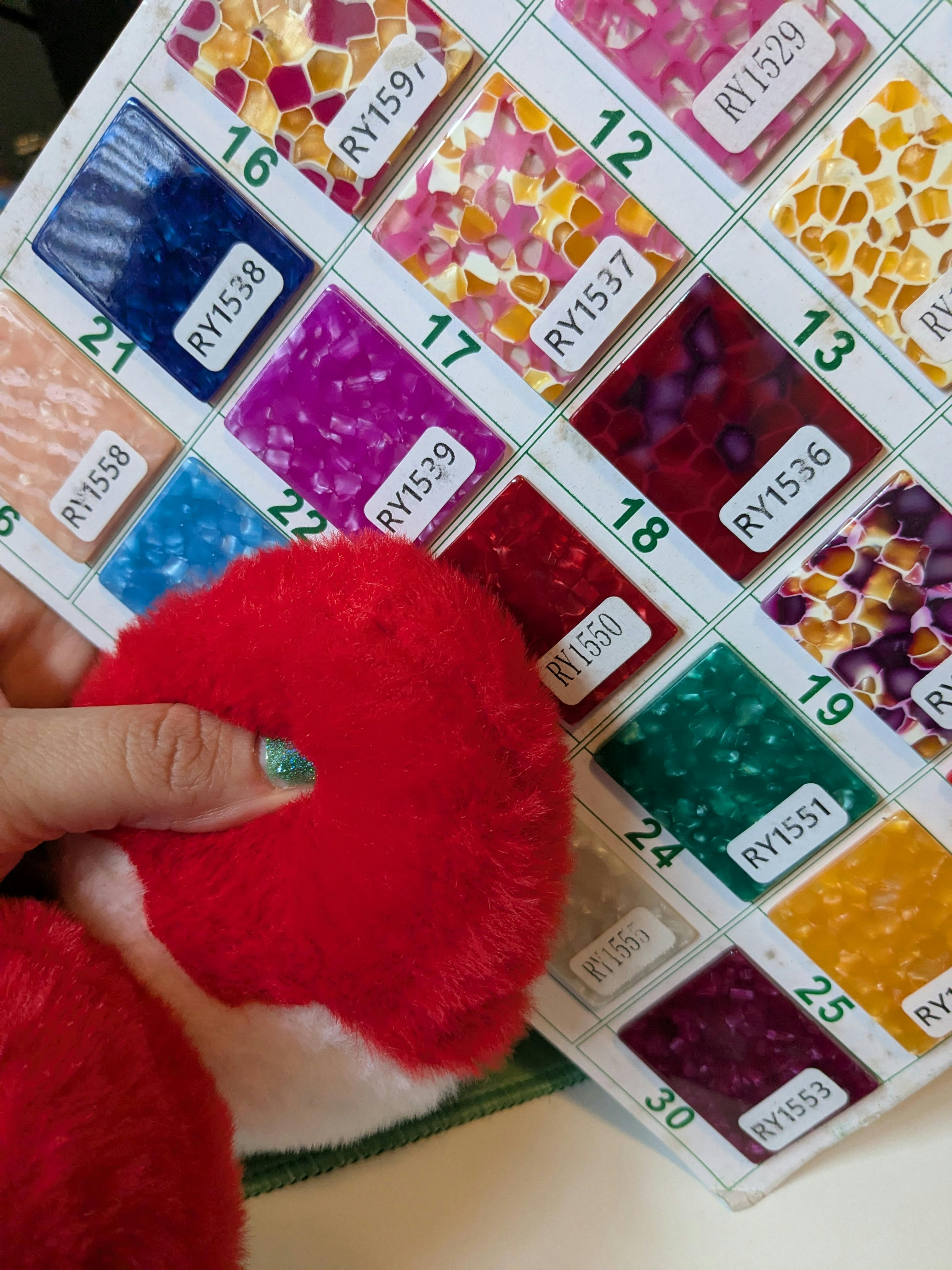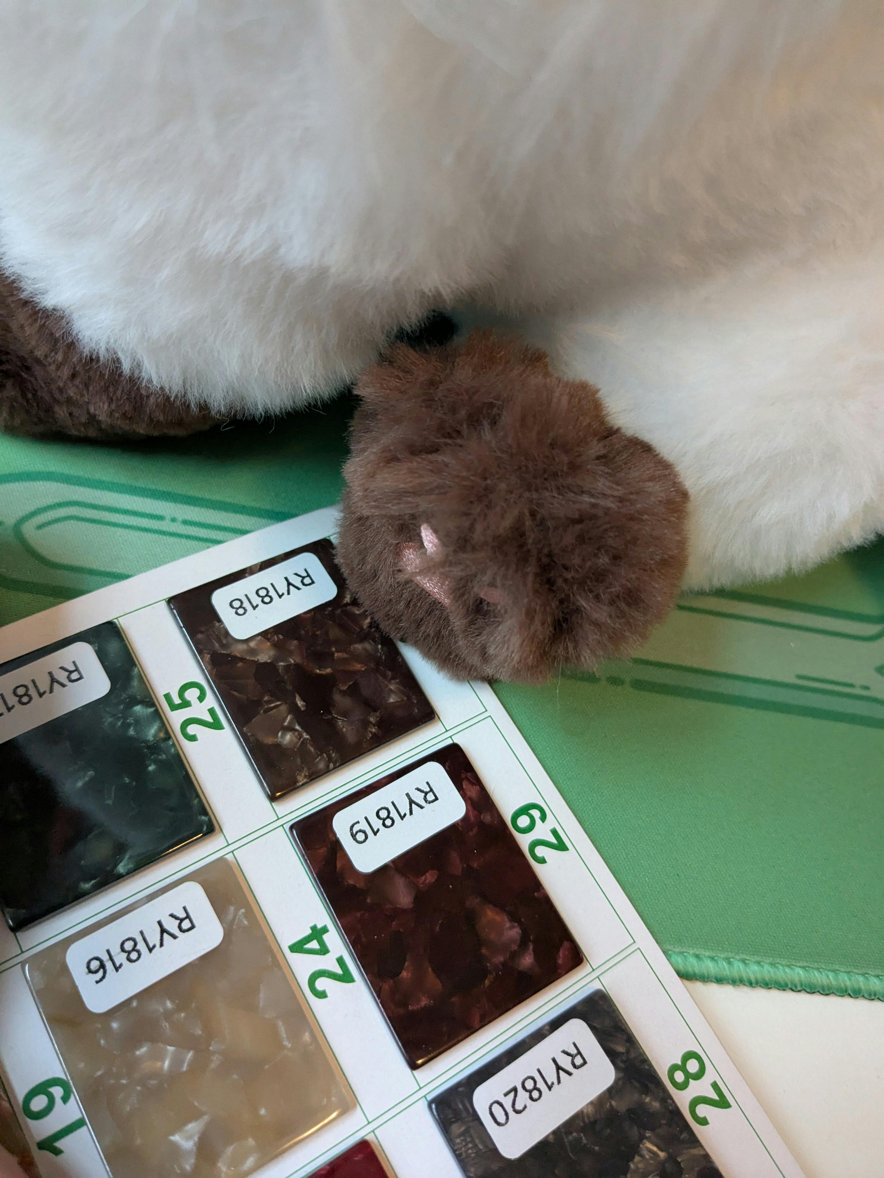 I don't even have all the choices they have. I just know I don't want them to be see through. I have a lot of claw examples I like but nothing matches the plush color exactly. I may do samples with two of the reds and see which looks best in the end. Just figured I'd finally update.