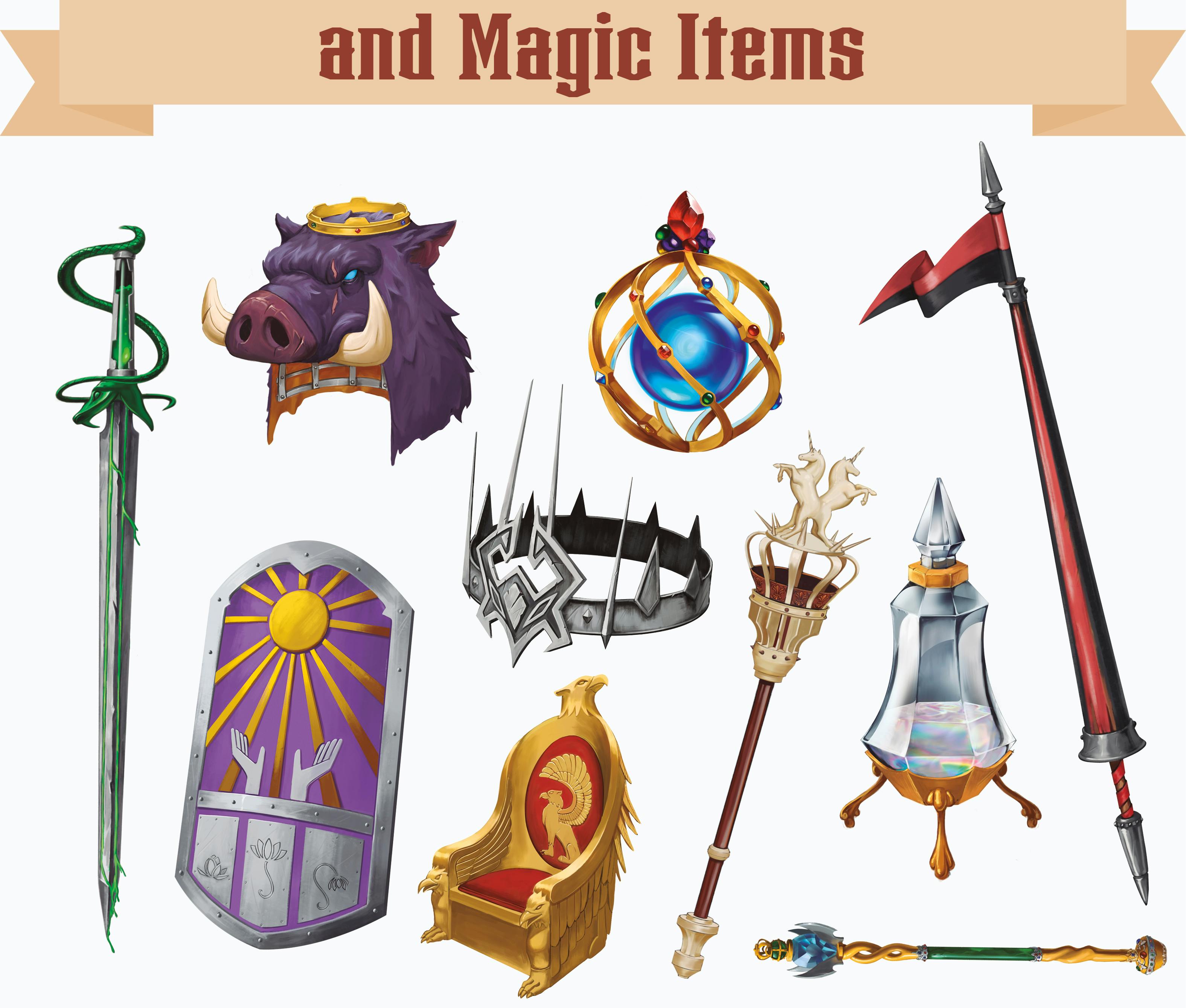 Adrian Pamplona illustrated our gloriously regal Royal Magic Items. You can see more of Adrian's work here.