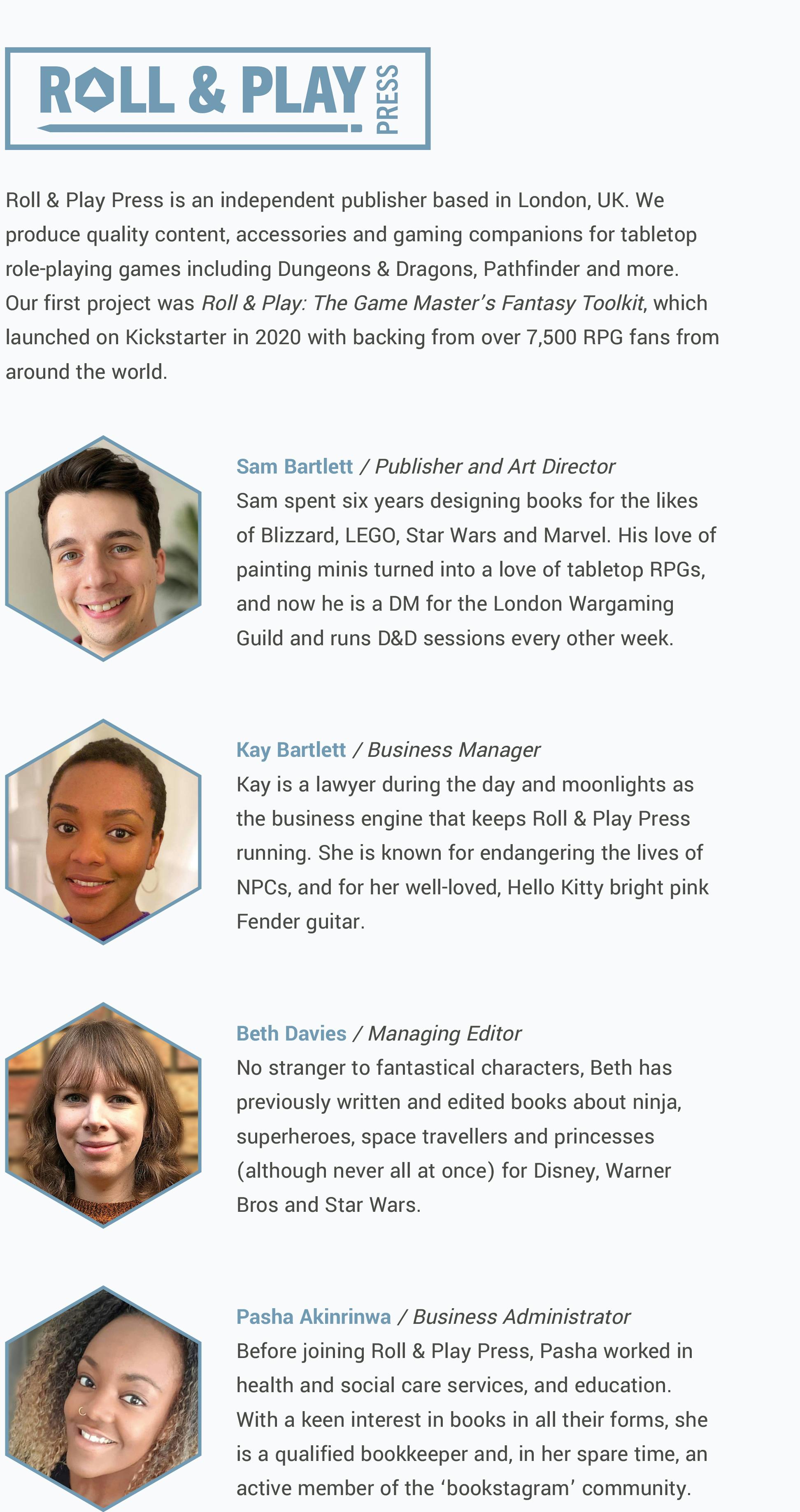 Everything has been planned in advance to enable us to deliver rewards as soon as possible after the campaign closes, at the end of June 2022. This digital-only project will be fulfilled via our website, www.rollandplaypress.com, with the help of our friends at BackerKit.