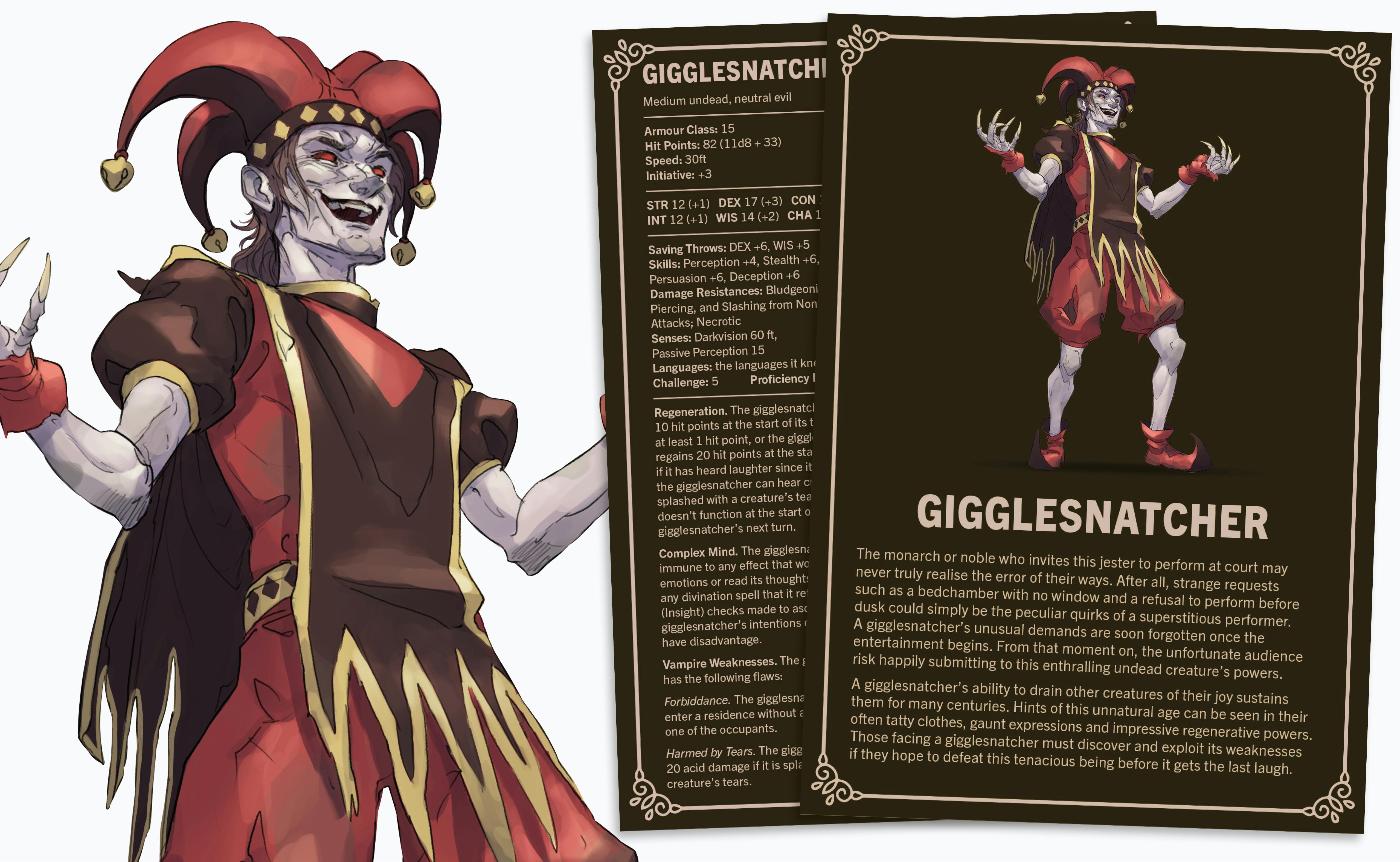 With beautiful illustrations, descriptive lore and full rules for 5E, these three monsters are the perfect foes for any royal adventure. Each monster also features an illustrated token for your virtual tabletop game.