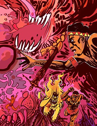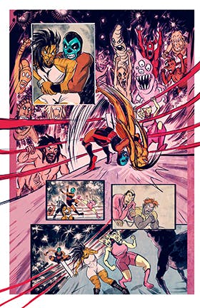Fantomah is the tale of a young Black woman wrestler whose talents attract an audience of a different sort. Join our high-flying heroine as she leaps from the top rope onto evil and puts a coven of villainous vampires in a chokehold of justice!