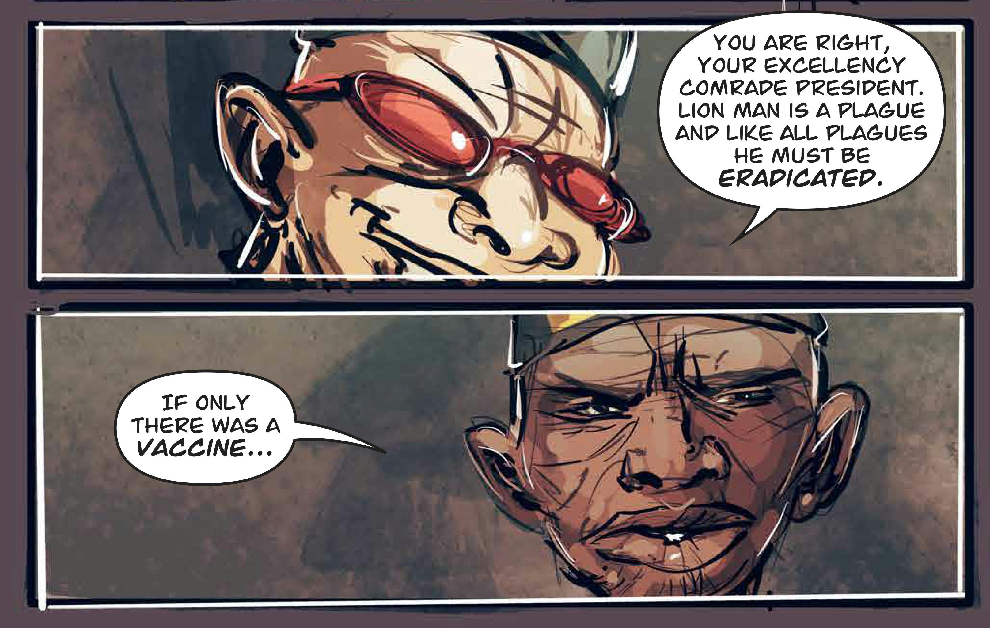 The small, west African nation of Xare is currently plagued by pandemic, a raging rebellion, and a doddering old dictator, all being manipulated by the nefarious Dr. Blut Sangre. Secret agent Lion Man of the NDGI (Nkruma-Dubois-Garvey Institute) must depend on his skills, wiles, and the determined Dr. Promise Moyo to save the day and the nation.