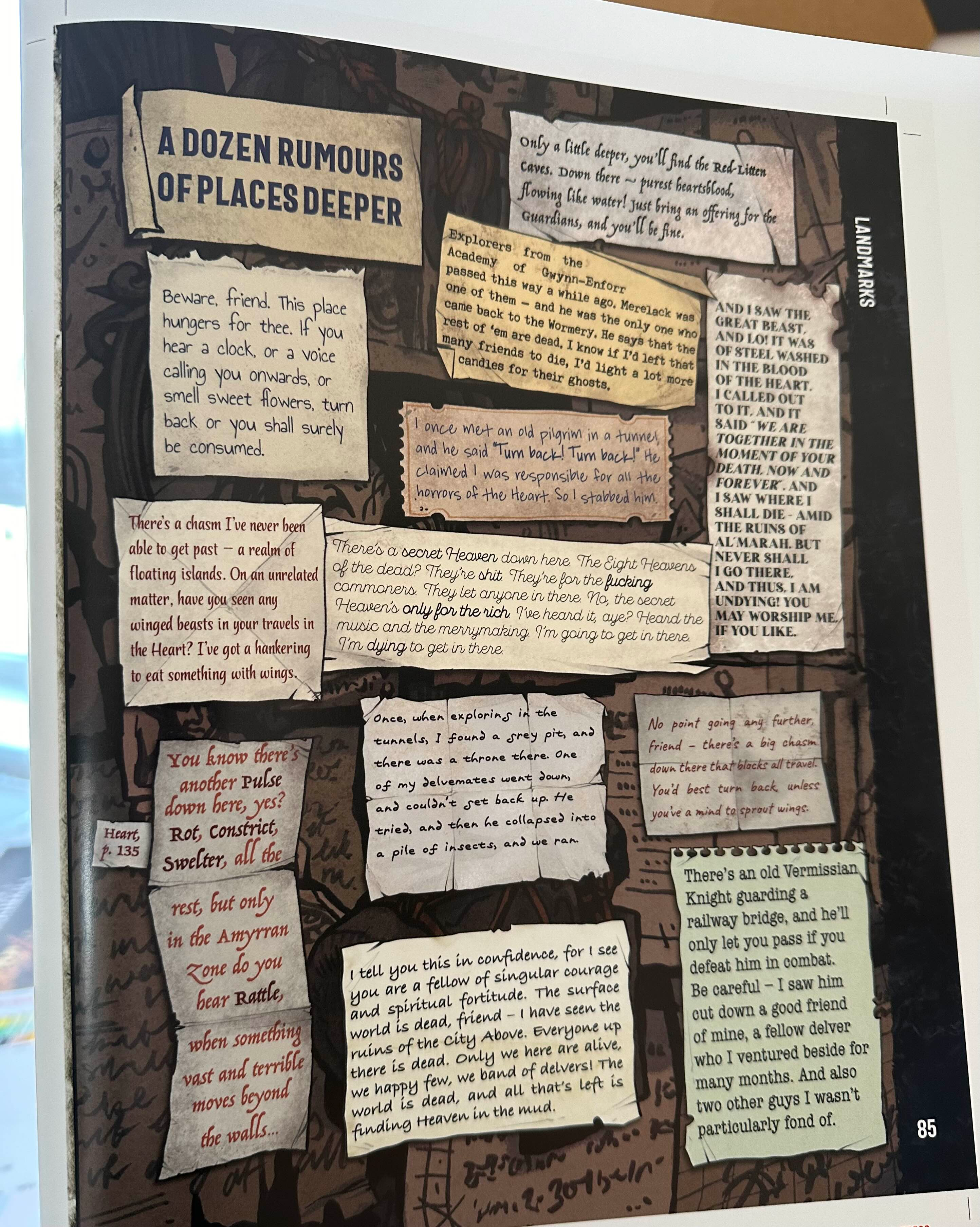 Since we released the PDF previews of the books (that’s Dagger in the Heart, and the reworked version of the Heart: The City Beneath corebook and the Heart Quickstart) we’ve been hard at work integrating all the final errata layout tweaks needed to make the books ready for print. A huge thanks to everyone who submitted feedback to our errata form. You saved us from a few embarrassing but admittedly hilarious mistakes. (How many livers do Aelfir have?)