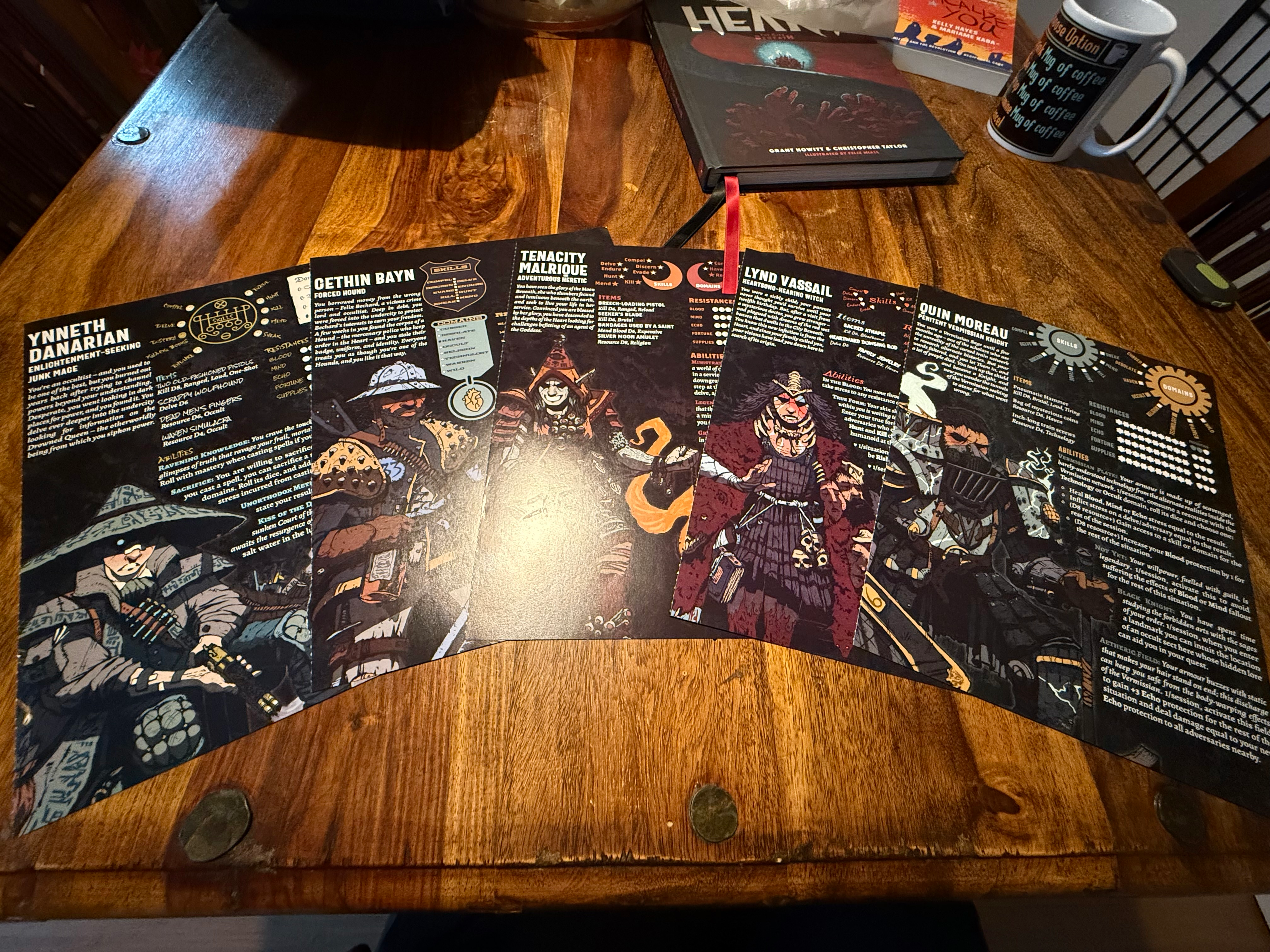 The tear out character sheets from the new Heart quickstart are very satisfying.