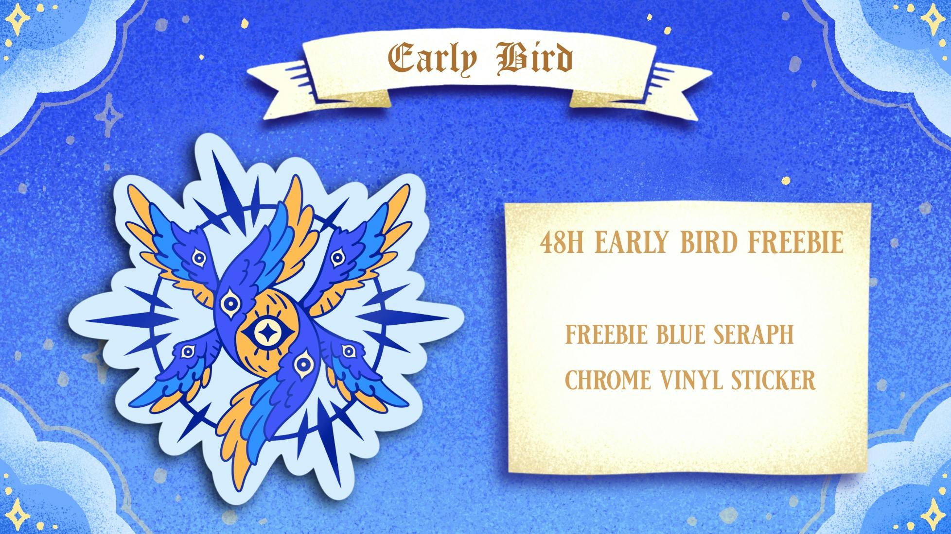 Early Bird freebie! Back within the first 48h and get a free sticker of the seraph design!