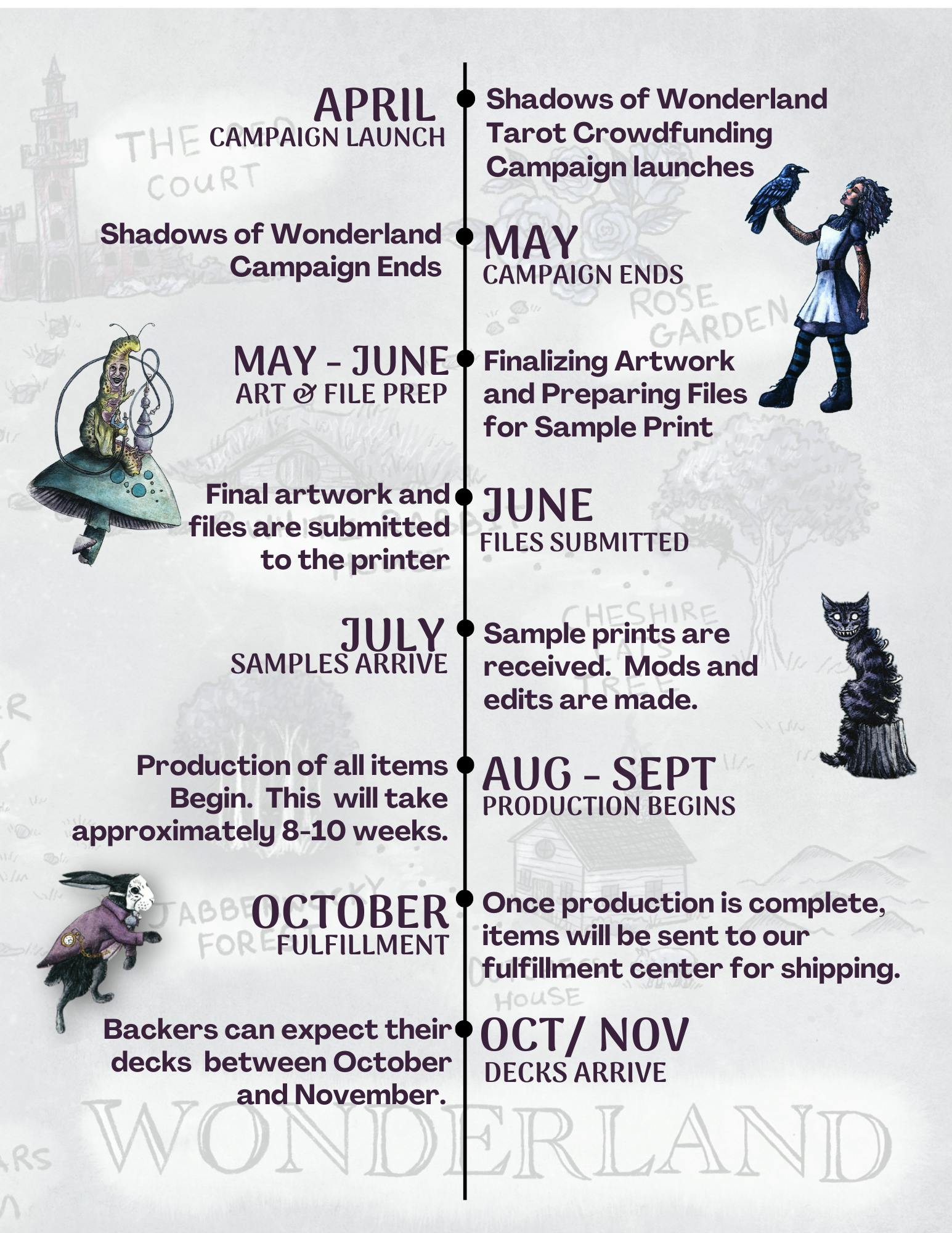 With rising production costs, your support helps cover everything from printing and shipping to paying our team (who are all wearing multiple hats and brewing plenty of tea). When you back Shadows of Wonderland Tarot, you’re not just getting a beautifully crafted deck—you’re helping Rue & Vervain continue doing what we love most: creating magical, meaningful things.