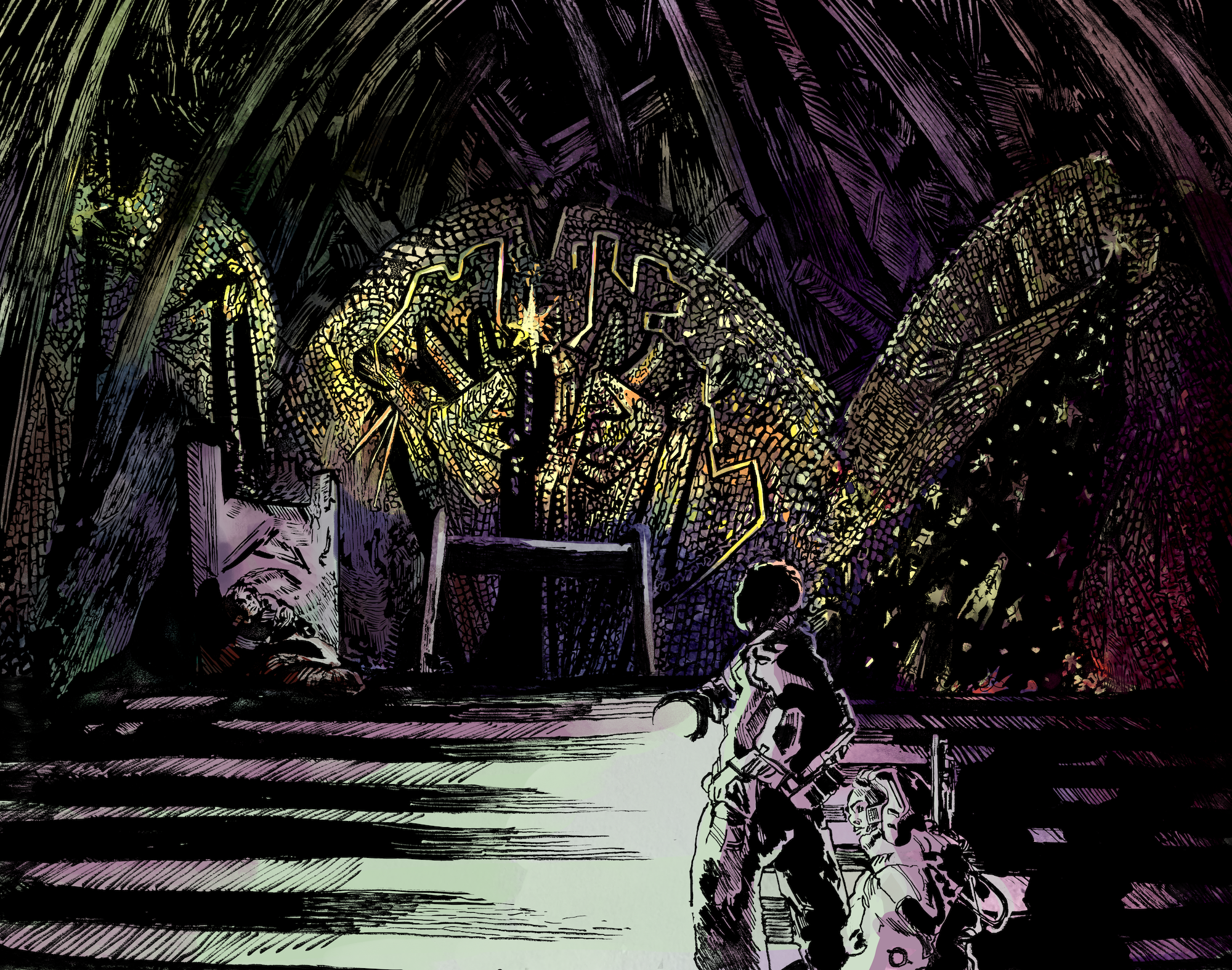 I can’t believe it’s already the end of April. This will be a short update. Jordan has been playtesting and revising the middle section of the module. Our editorial meeting had all of us agreeing that some big revisions needed to happen to this section to make it work as well as the rest of the book. Greenspore is concurrently working on copy and line editing of the more finalized sections, they’re working on honing the language to make it a little tighter and a little more terse. Amanda is working on some full spread illustrations for us, and then we’ll start to work with her on spot art. We are totally on track to start layout this summer. I’m going to leave you with one more illustration from Bride of STAR Station.