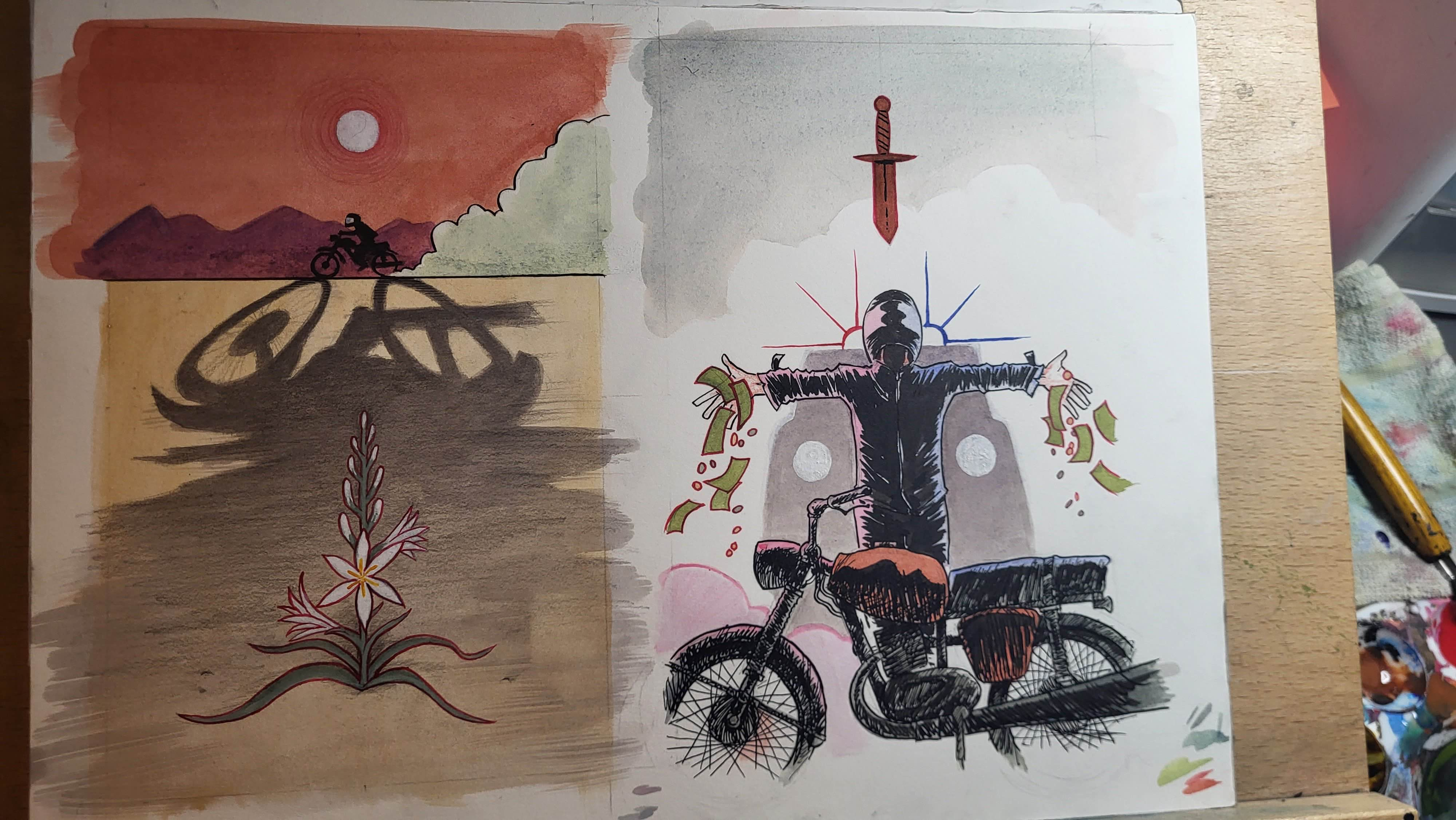 RV Games actually has multiple product lines, and during the month of March, we will be taking part in BackerKit Pocketopia with a solo/duet biker journaling ttrpg written by Kyle Tam with art by Charles Ferguson-Avery. It is titled, Hit the Road Jack. It is designated as RV Games Microgame #4.