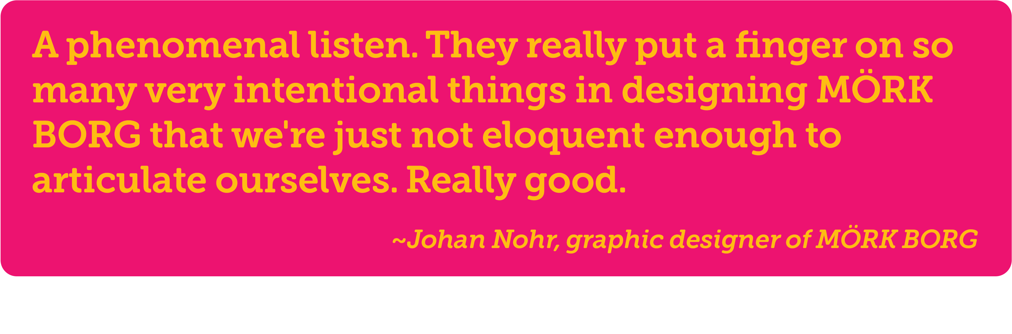 I've covered games like Mork Borg, Dungeons & Dragons, Lasers & Feelings, Blaseball, Brindlewood Bay, and more.