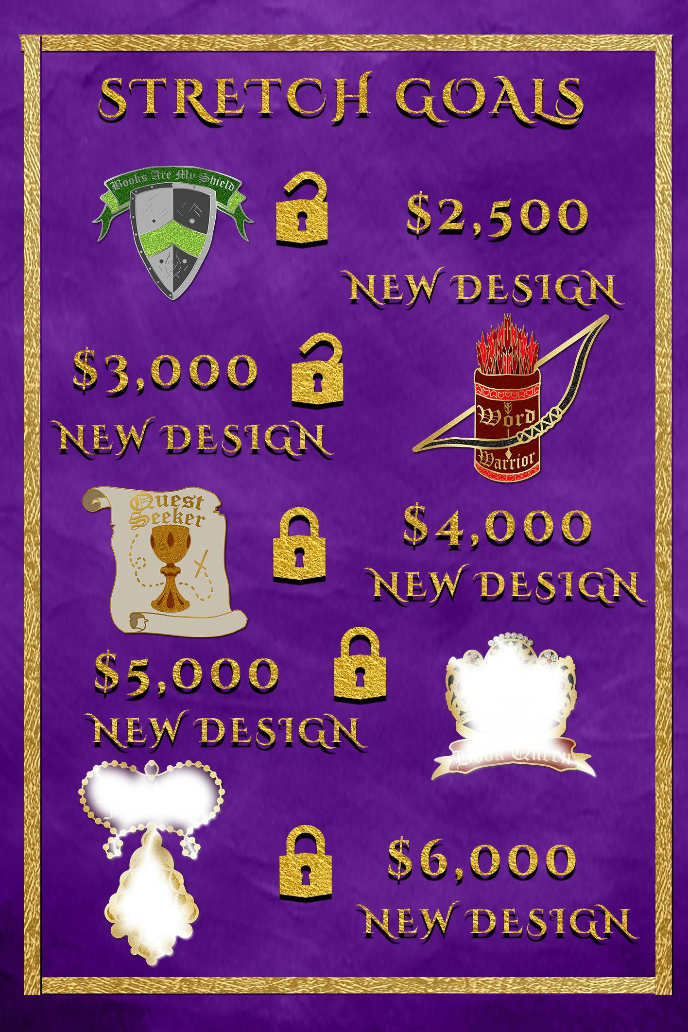 Select how many pins you want to buy from the unlocked designs. The more you buy, the more you save! If you back more pins than unlocked designs, or you just really want more than one of a single design, you can duplicate any pin you love during the survey. Selections will be made in pledge manager after the campaign ends.