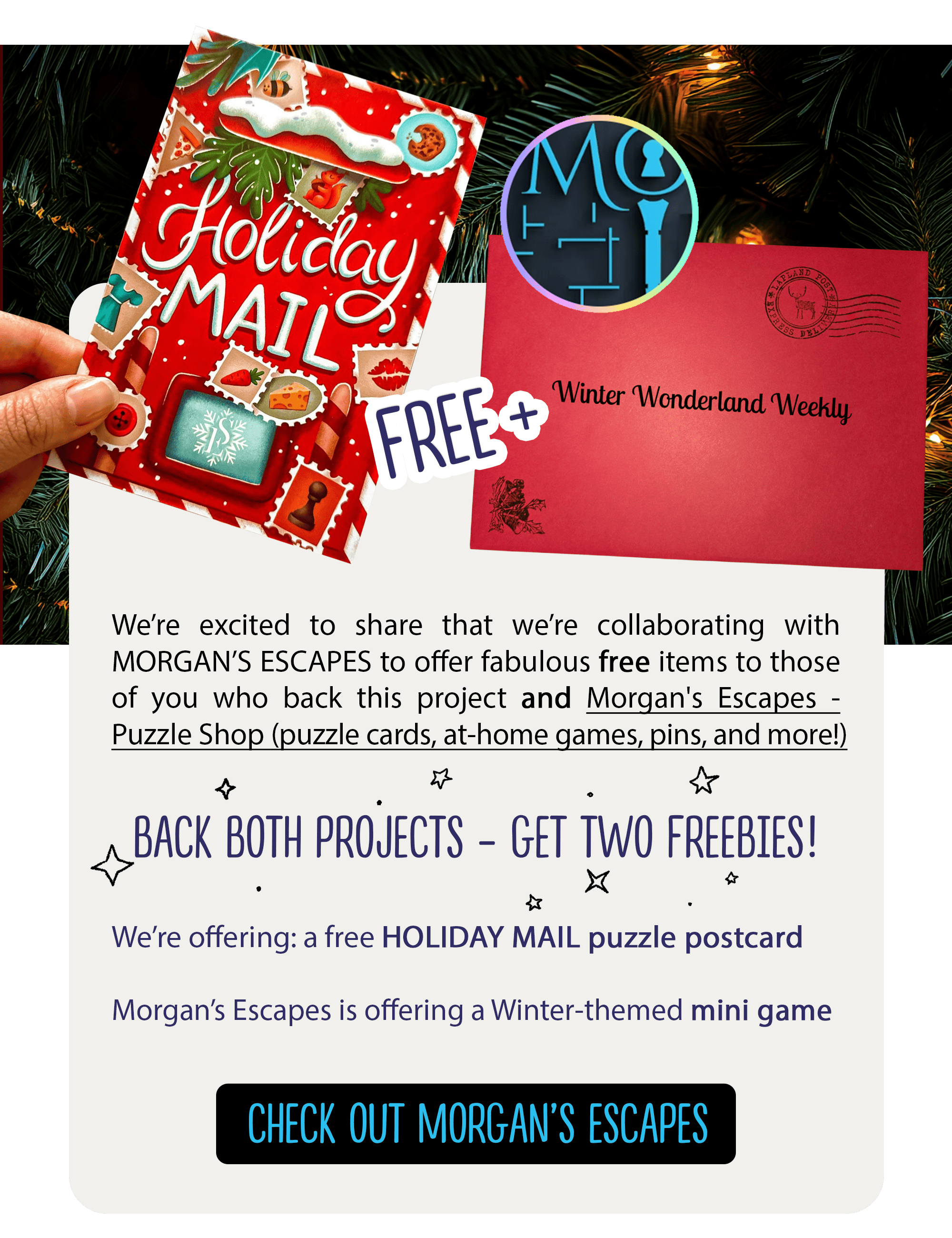 Exciting news! We’ve teamed up with Morgan’s Escapes to bring you two fabulous free gifts if you back both of our Holiday Market projects!