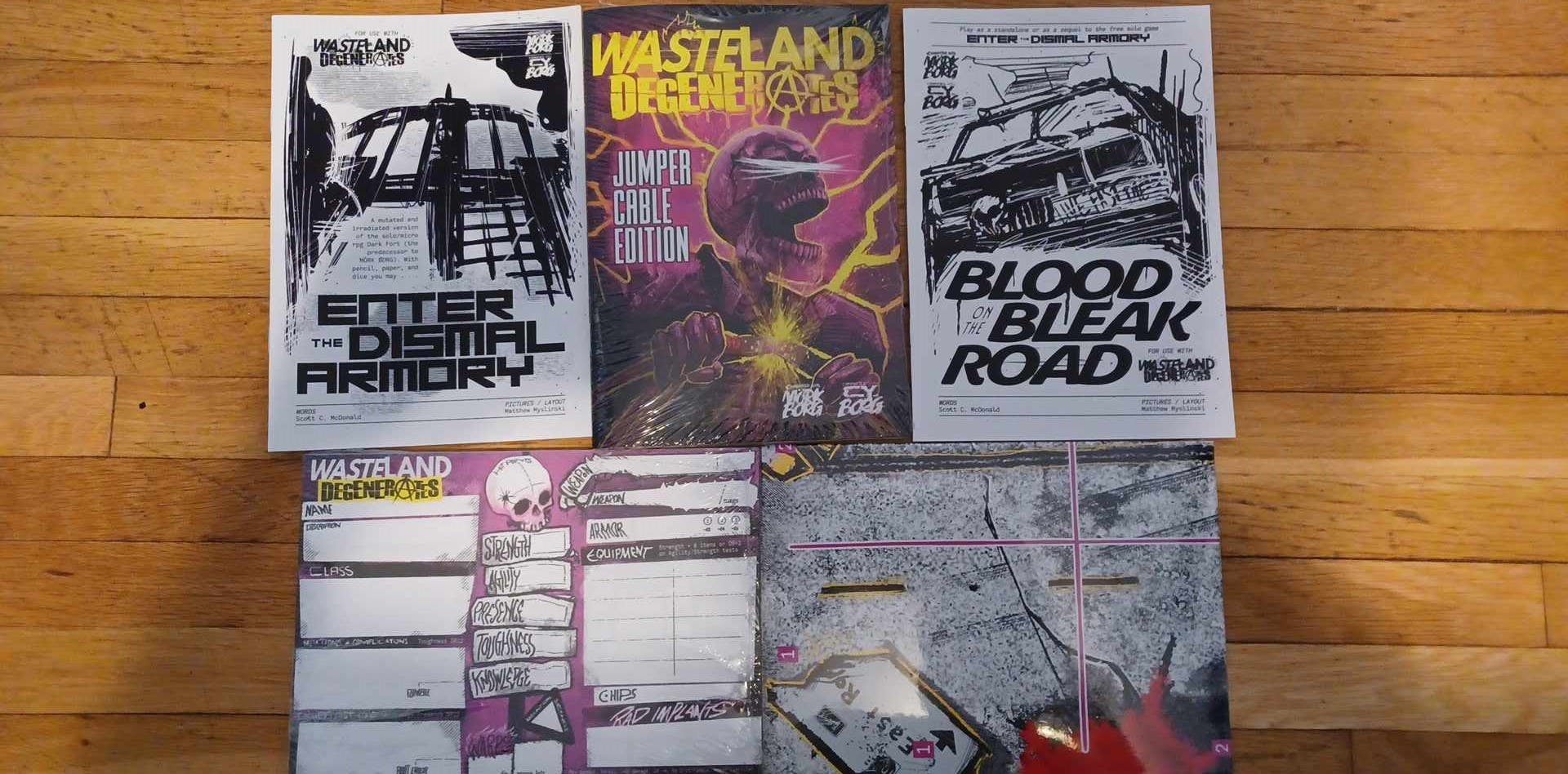 I managed to look through a few pages of a pre-publish edition, and it's very much a complete game already, and well worth the pledge... even better, there's lots of stuff that can serve as inspiration for Wasteland Degenerates! It's got mutants, looting, vehicle combat, the whole deal. Check it out!