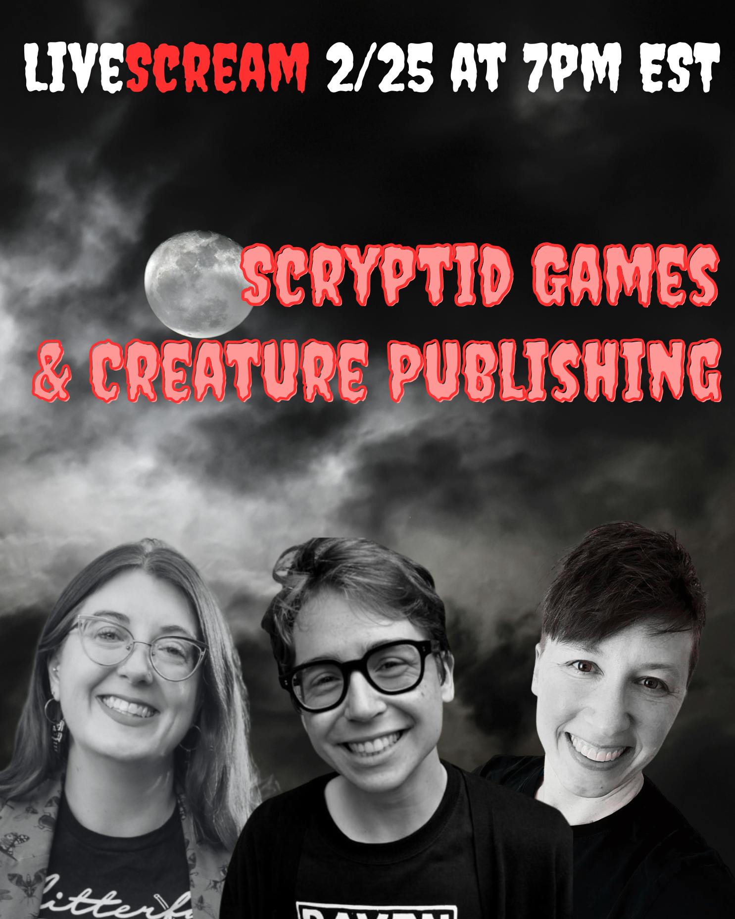 Hang out with Nat, Brigitte, and Will tonight to learn more about both anthologies, hear what's new at Creature Publishing, and nerd out about queer and feminist horror!
