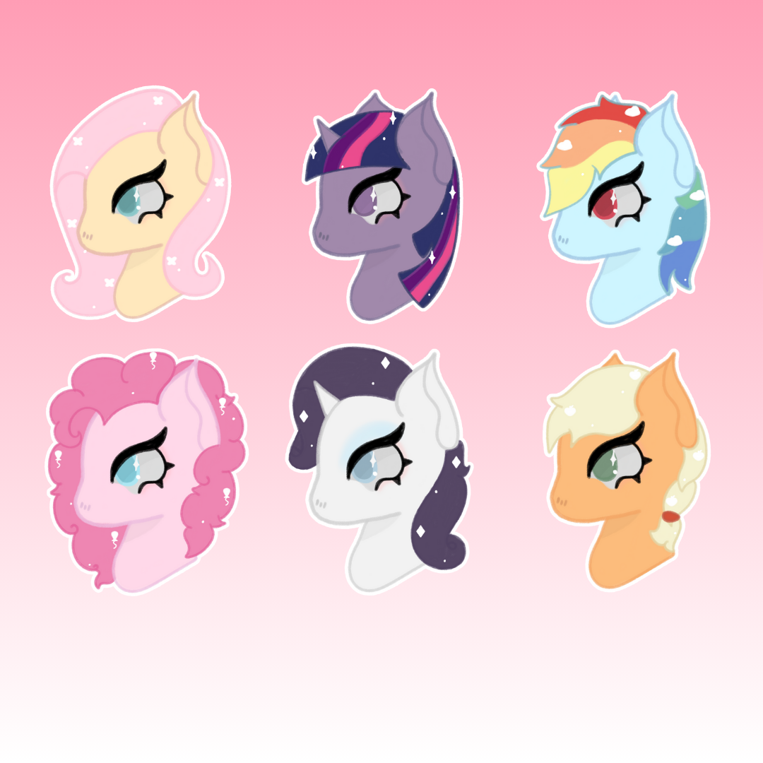 ☆All mane 6 stickers can now be added to your pledges!☆ ~Both chibi sits and chibi headshot versions of the stickers are now available as add-ons to your pledges as sticker packs! ~You will still recieve the two freebies(or all if you've pledged for all 6 keyrings)as well as the add-ons that you have selected! ~These will be made to order but if you would prefer to support via my ko-fi page I'll be posting a 30% off on all stickers in my shop next month so keep an eye on your emails!<3