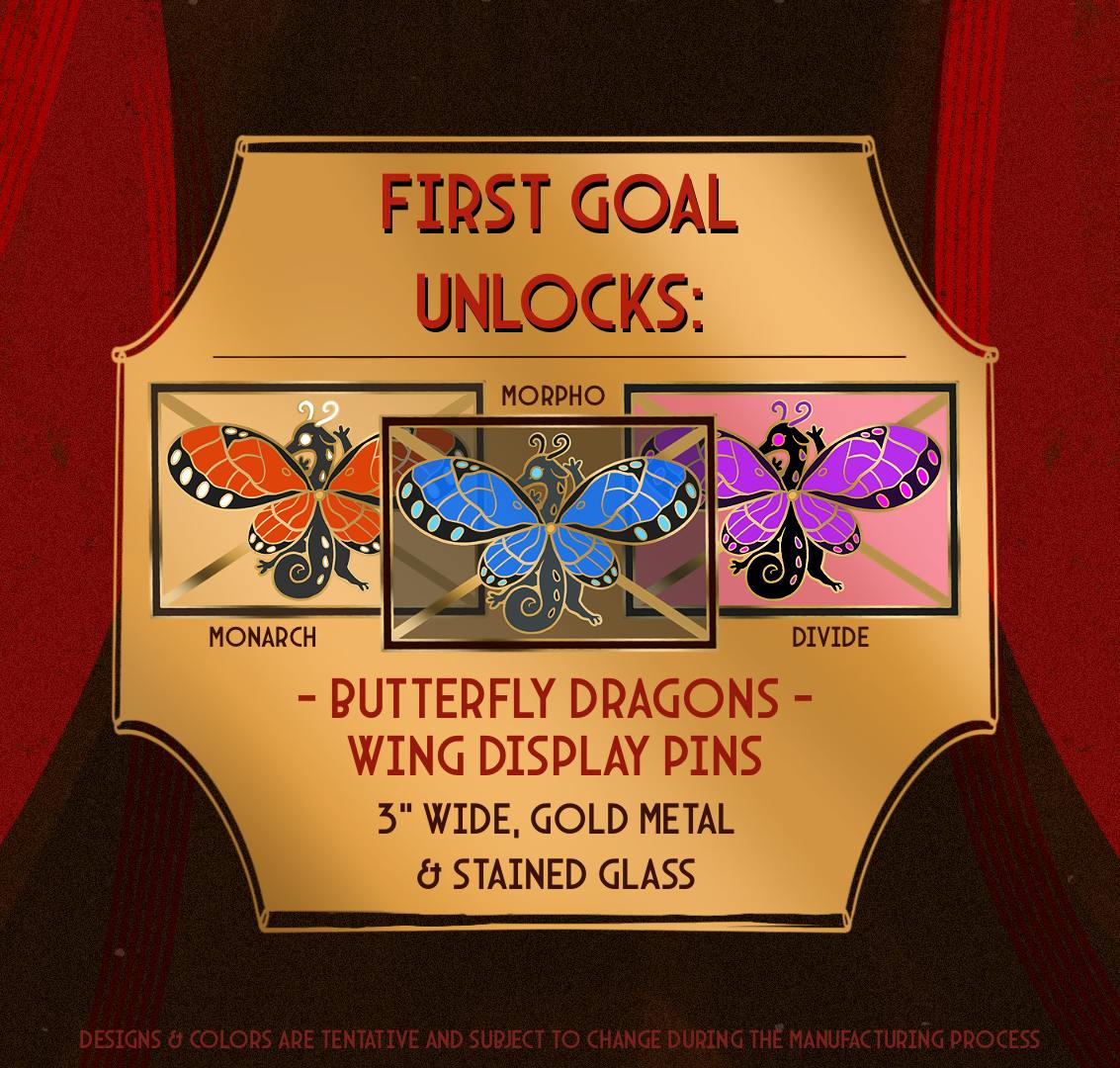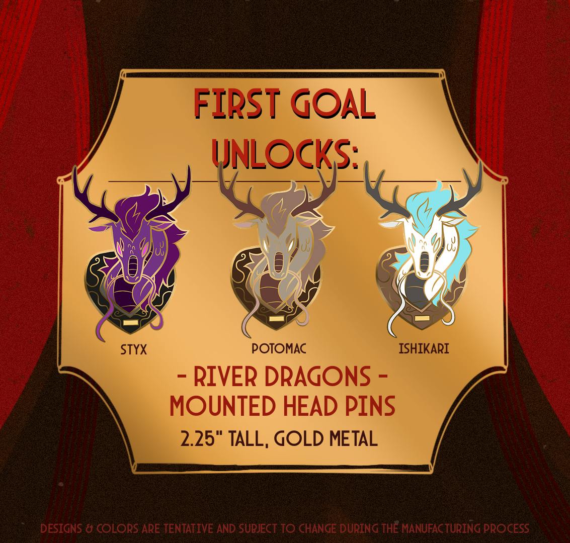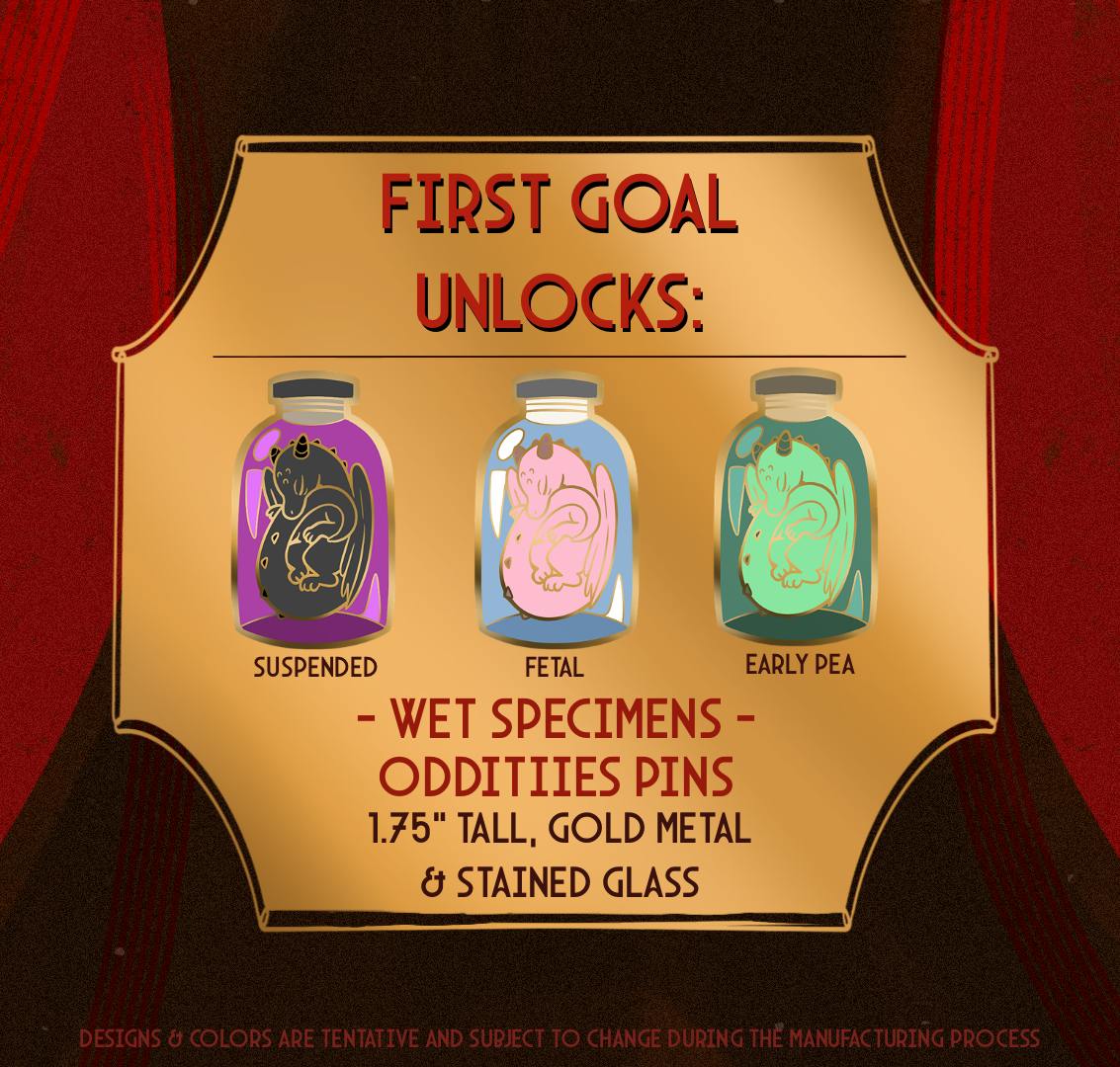 A set of enamel pins centered around various dragons and the forms of taxidermy in which they have been preserved forever!