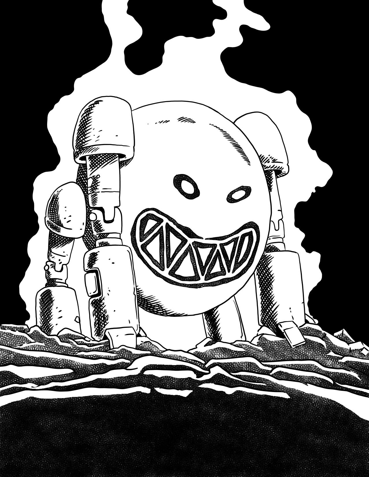 The spherical torso of this construct is painted with a wicked grin, making it look like a head with arms and legs. It rushes toward you, surprisingly fast, as steam rises from its body.