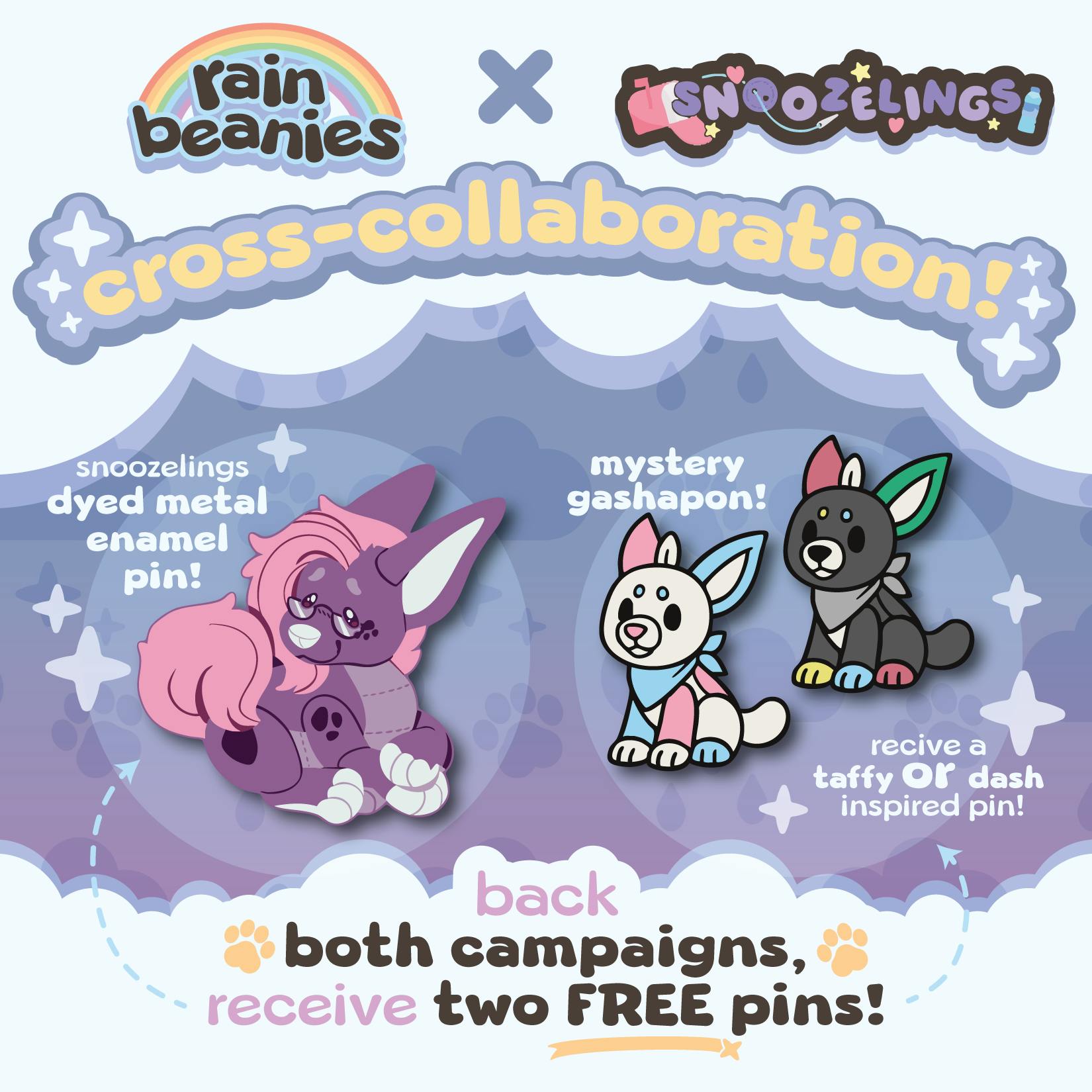 As part of Pintopia 2025, we are excited to announce that we are collaborating with the plushie designer Hannimations. If you pledge to Rain Beanies, as well as Snoozelings Blind Bag Mini Pins, you will recieve a free pin from each campaign as thanks for your support. That's two free pins!!
