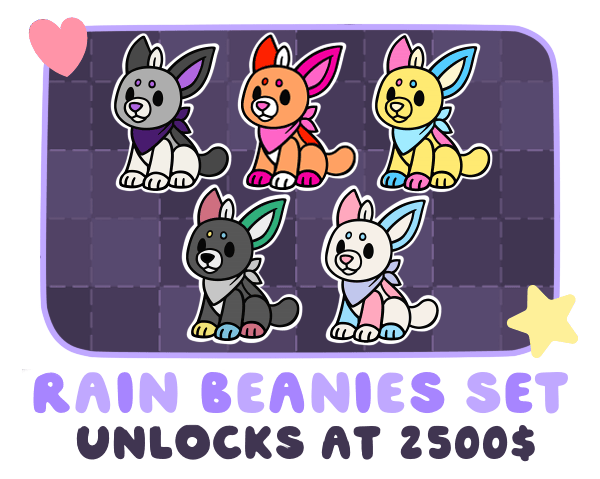 If we unlock all our current pin goals, we will be doing even more mystery gashapon pins of the rain beanies characters. Plus we may even unlock a snazzy snoozelings collab pin drawn by Hannimations. **Please note that the Mystery Gashapon pin will be completely random (either Taffy or Dash) and does include a matching in game item. When backing our project, you will also recieve a free Early Access code for Snoozelings.