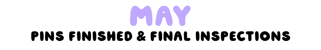May - Estimated Arrival of pins. We will be taking time to inspect and package the pins.