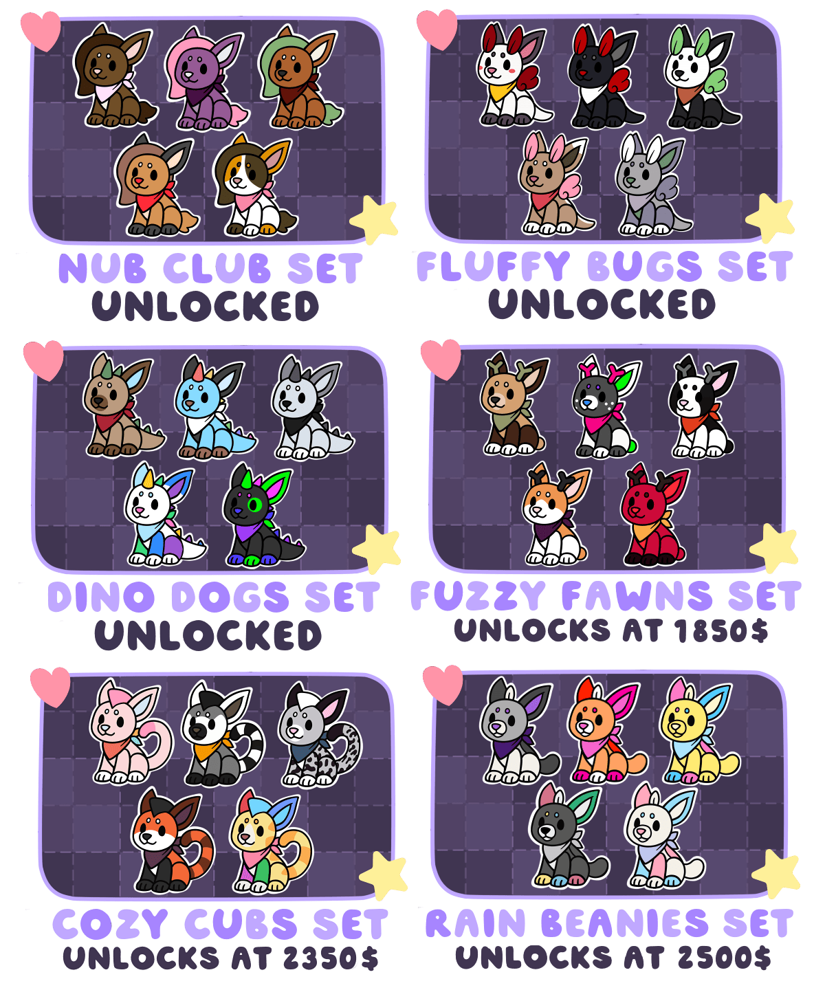 If we reach this tier, we will be adding three new characters: Ruby, Beans, and Sprinkles. These cannot be gained through the free collaboration pin and - if unlocked - will be an additional set for pin tiers only. If selected, you may receive any five of the Rain Beanies pins.