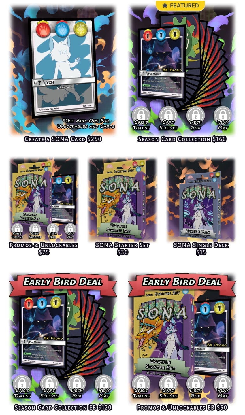 This campaign is mainly to fund the printing costs of the new SONA cards. However, the more funding this campaign receives, the more cards and accessories we can develop for everyone!