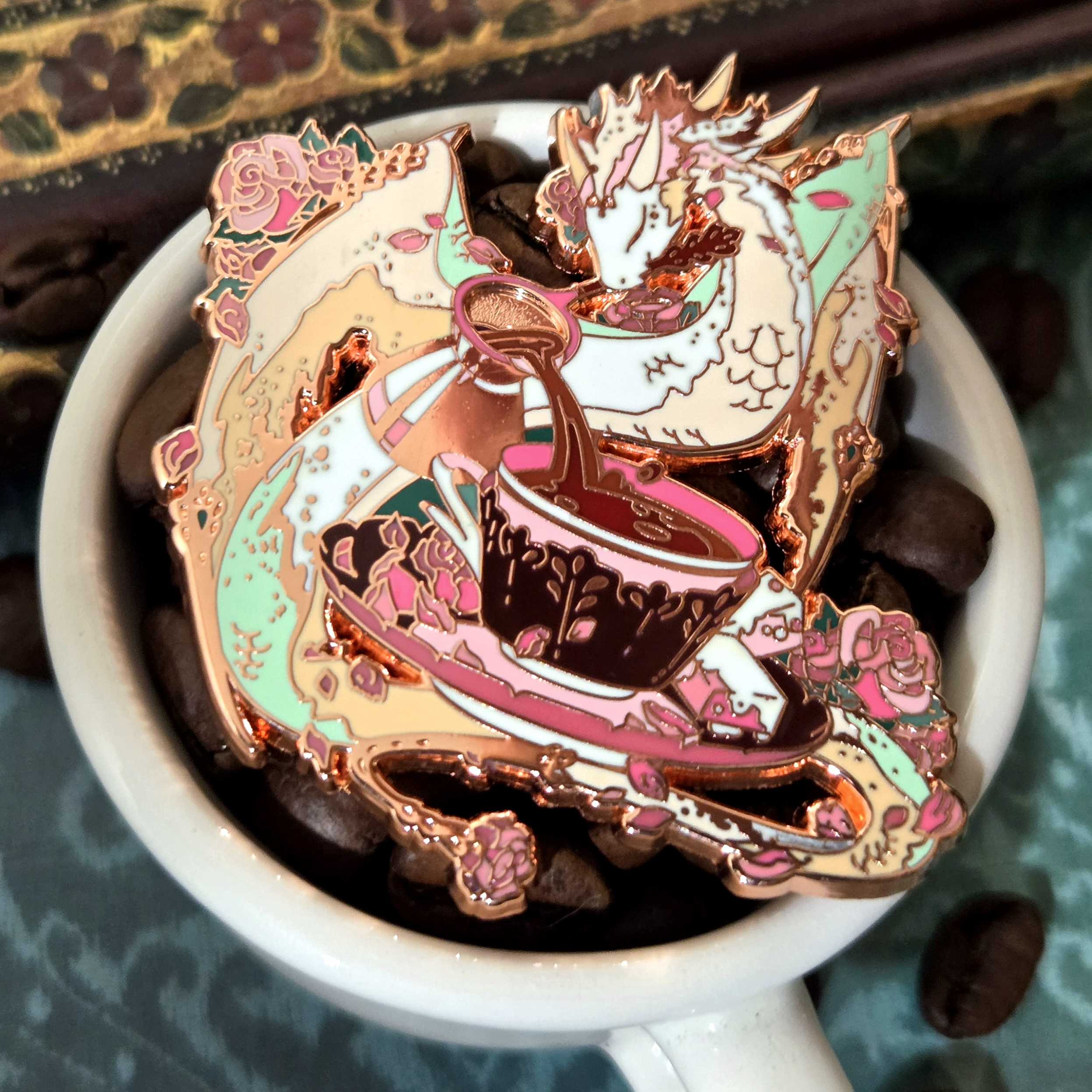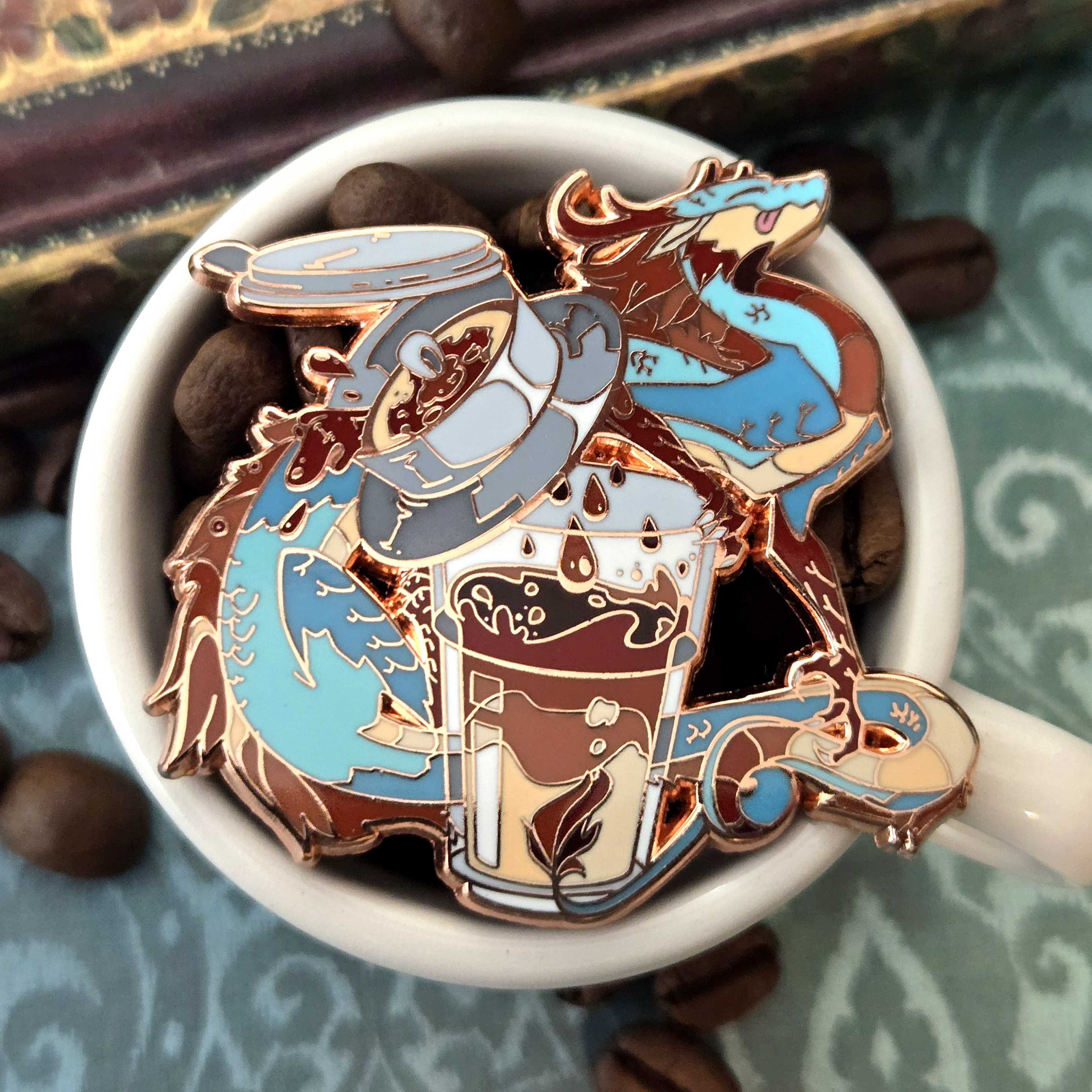 Coffee Dragon enamel pins are available on Etsy!
