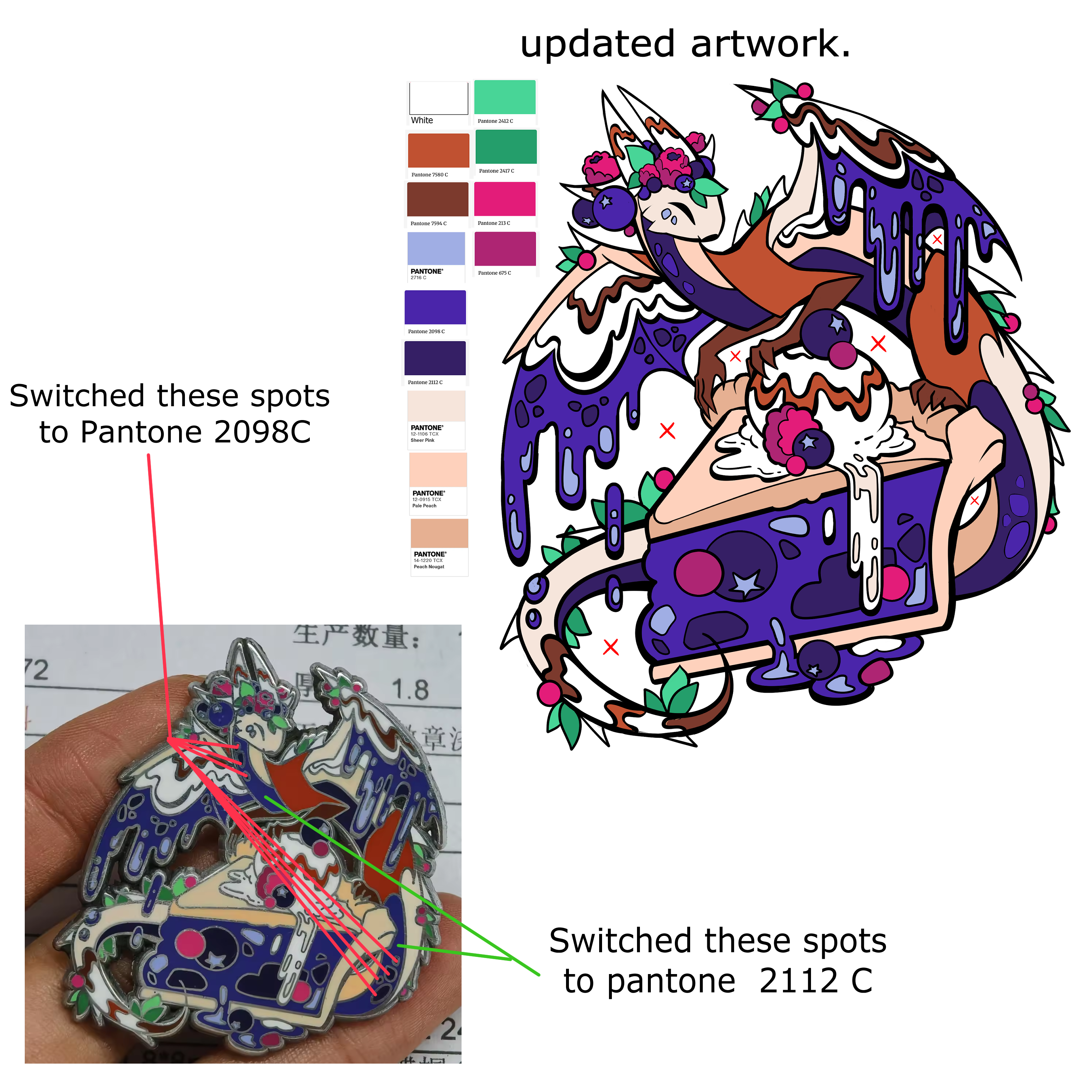 These were the bakery babies that needed a few adjustments, but luckily all the of these adjustments are super fast and quick easy fixes. They are also so minor that they don't delay anything. I adjusted what you see, and because I know that'll make them perfect, they are going to start production immediately. So once they correct it, which they said two days from now, all pins will be in production!!! YIIPPEEE!!!!