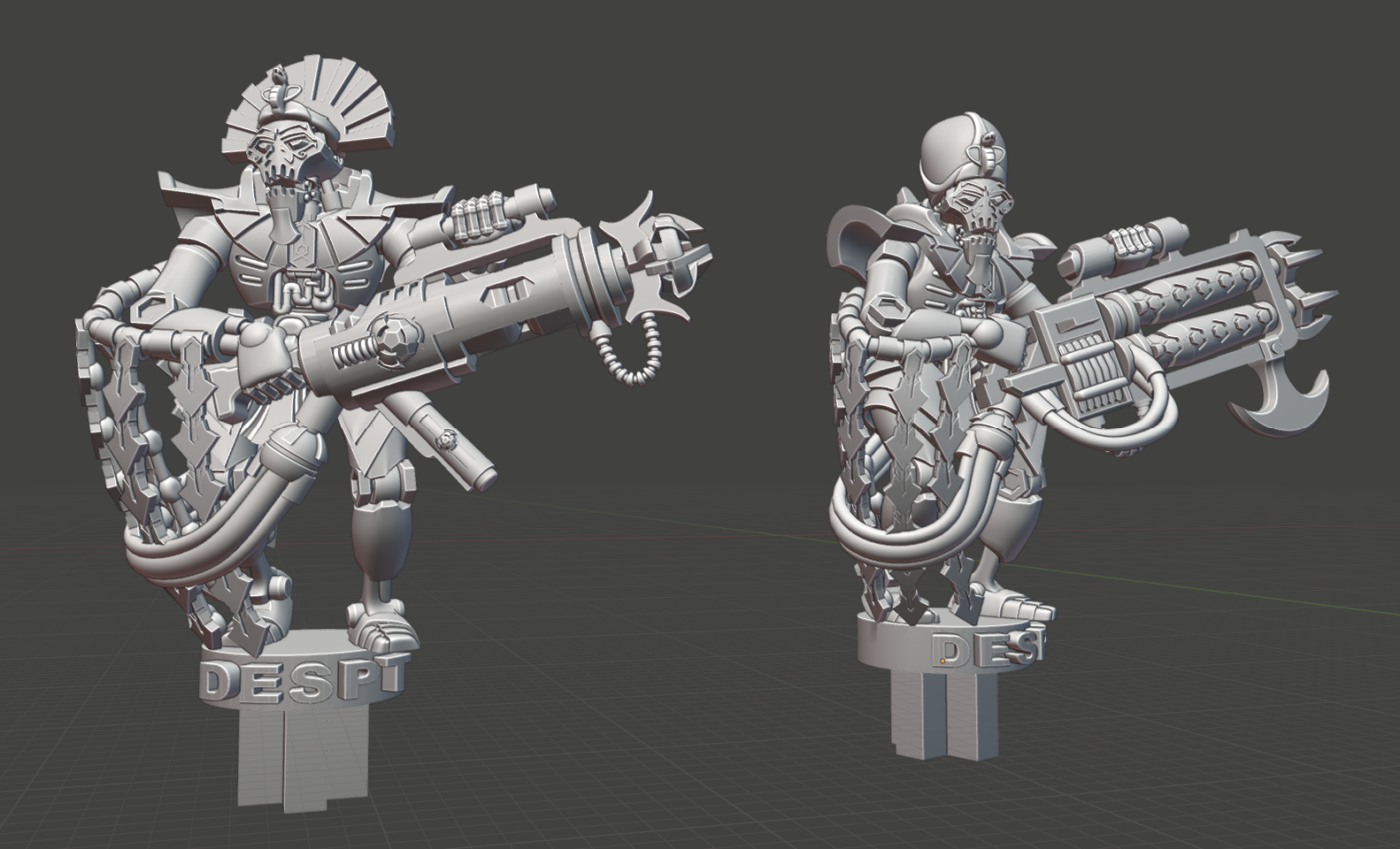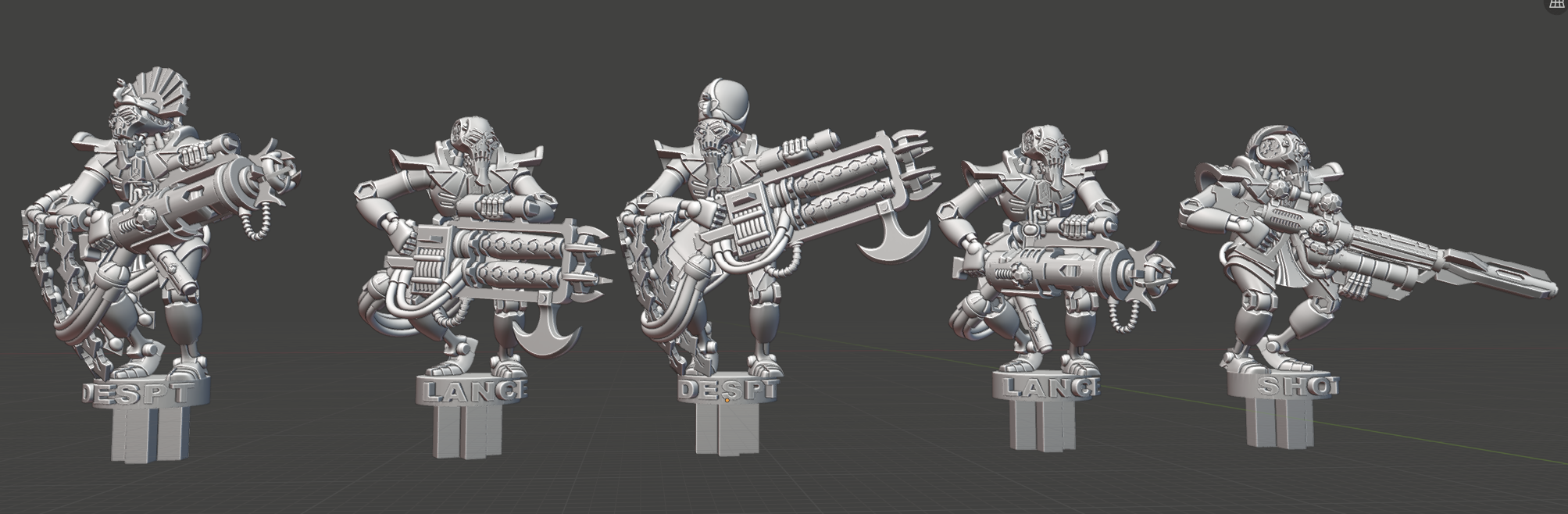 This team in particular helped me realize just how much work there is still to do. Why? Because I have already made (practically) an entire army of Star Pharaohs, and it's not actually saved me any time making this team. Sure, I had to generate much less geometry than compared to a scratch-built team, but getting the original 28mm Ascended star Pharaohs into their new scale and cramming them into the Port-O-Battle workflow turned out to be a right pain in the arse, just like all the other teams have been.