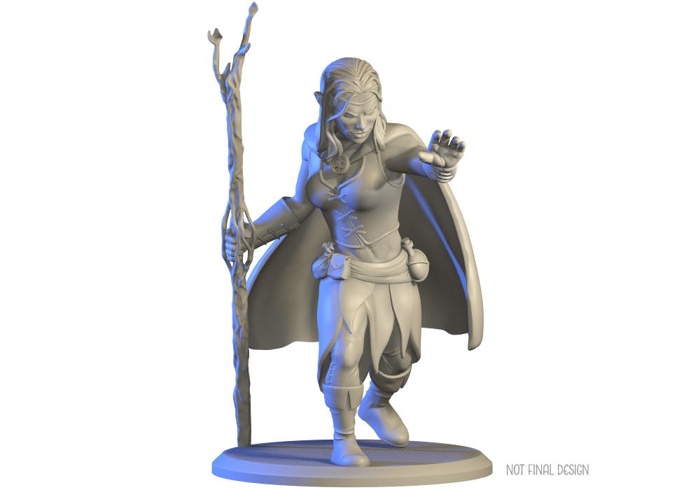 Here's a look at a preliminary render of the Circle of the Fractured Path Druid mini - scaled to the 32mm "heroic" standard for tabletop miniatures. The mini is included in two reward tiers and is available as an addon for all physical reward tiers.