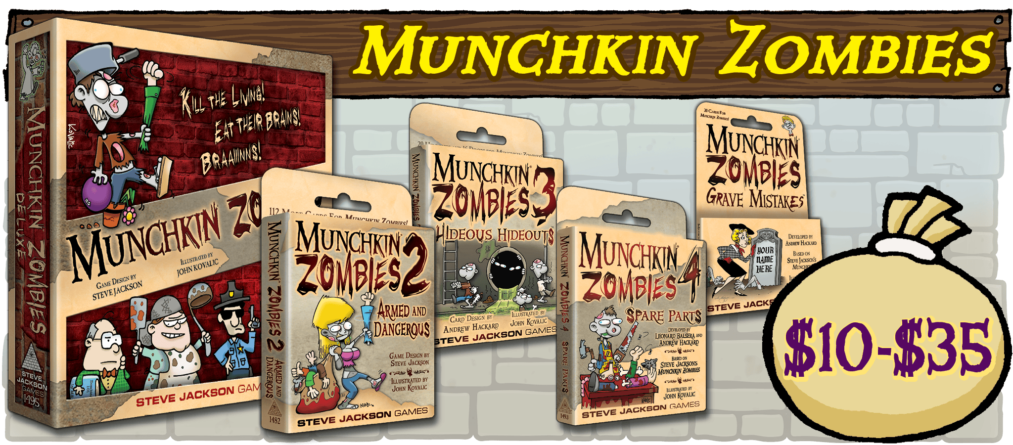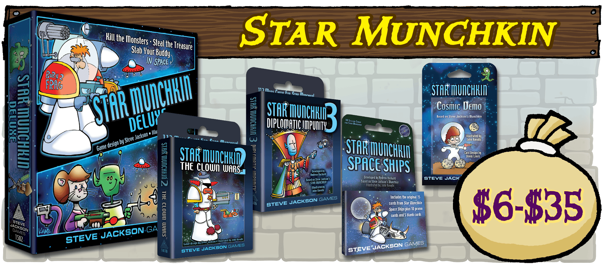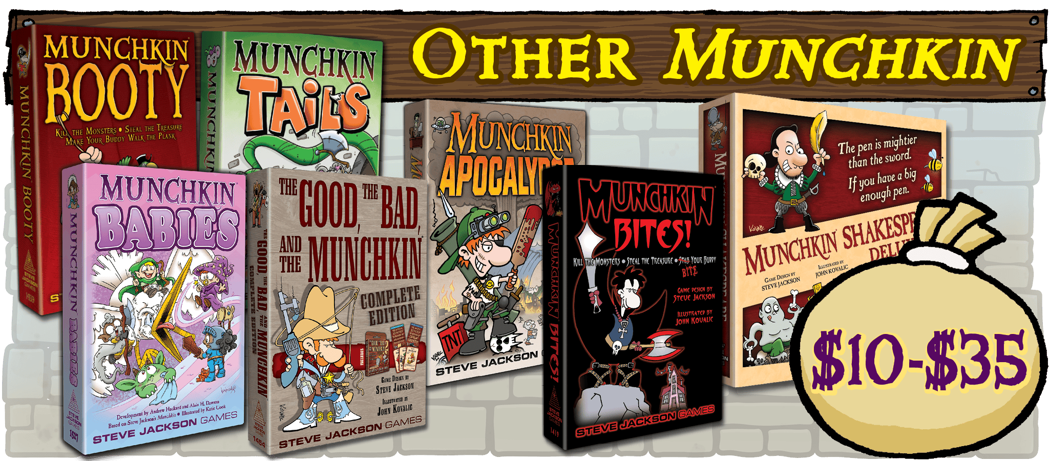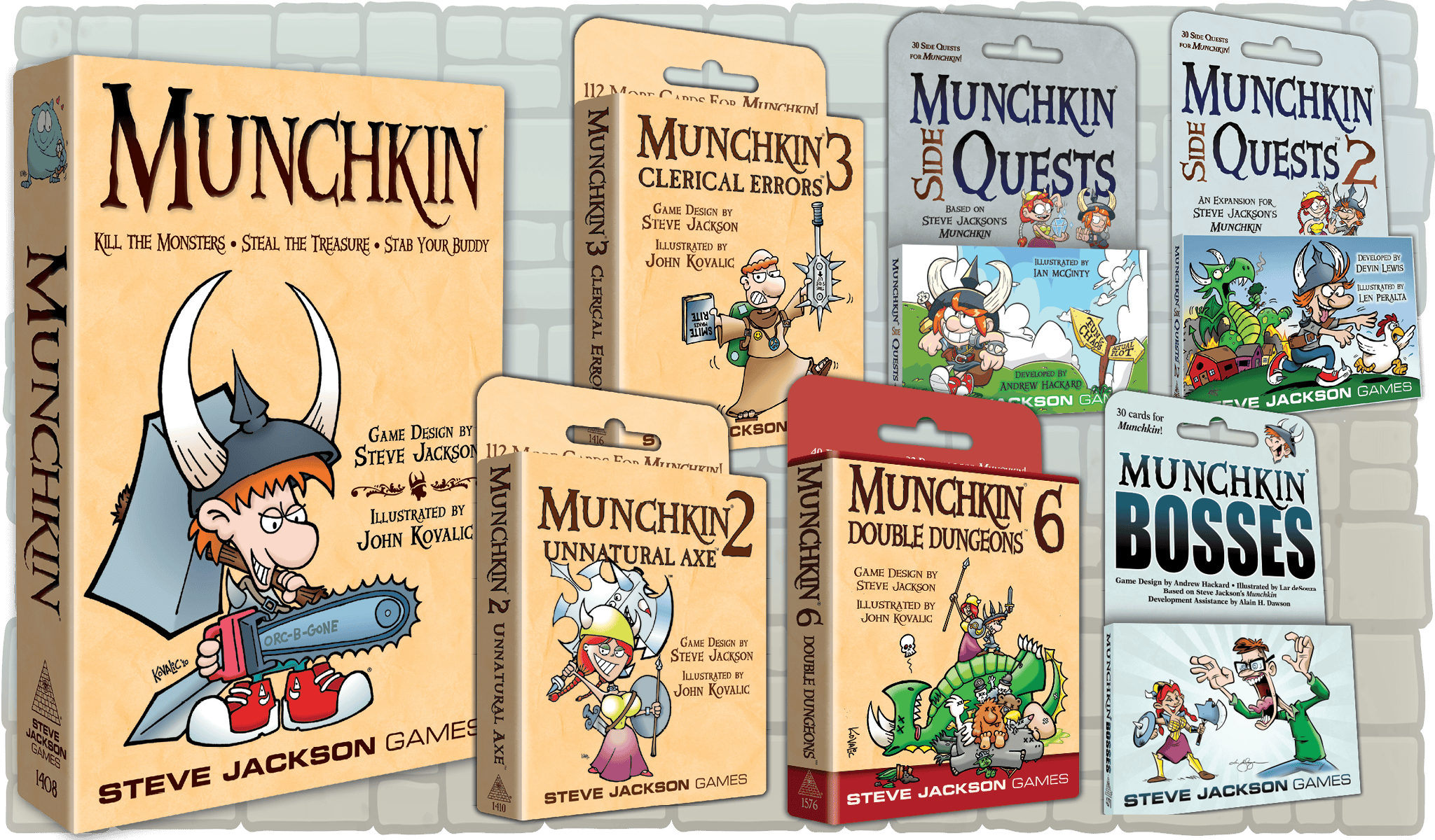 Steve Jackson Games, based in Austin, Texas, has been publishing games, game books, and magazines since 1980. Our top hit is Munchkin, with over 12 million Munchkin games and supplements in print worldwide. Other hits include GURPS (the Generic Universal RolePlaying System), The Fantasy Trip, Zombie Dice, Car Wars Sixth Edition, Ogre, and Illuminati.