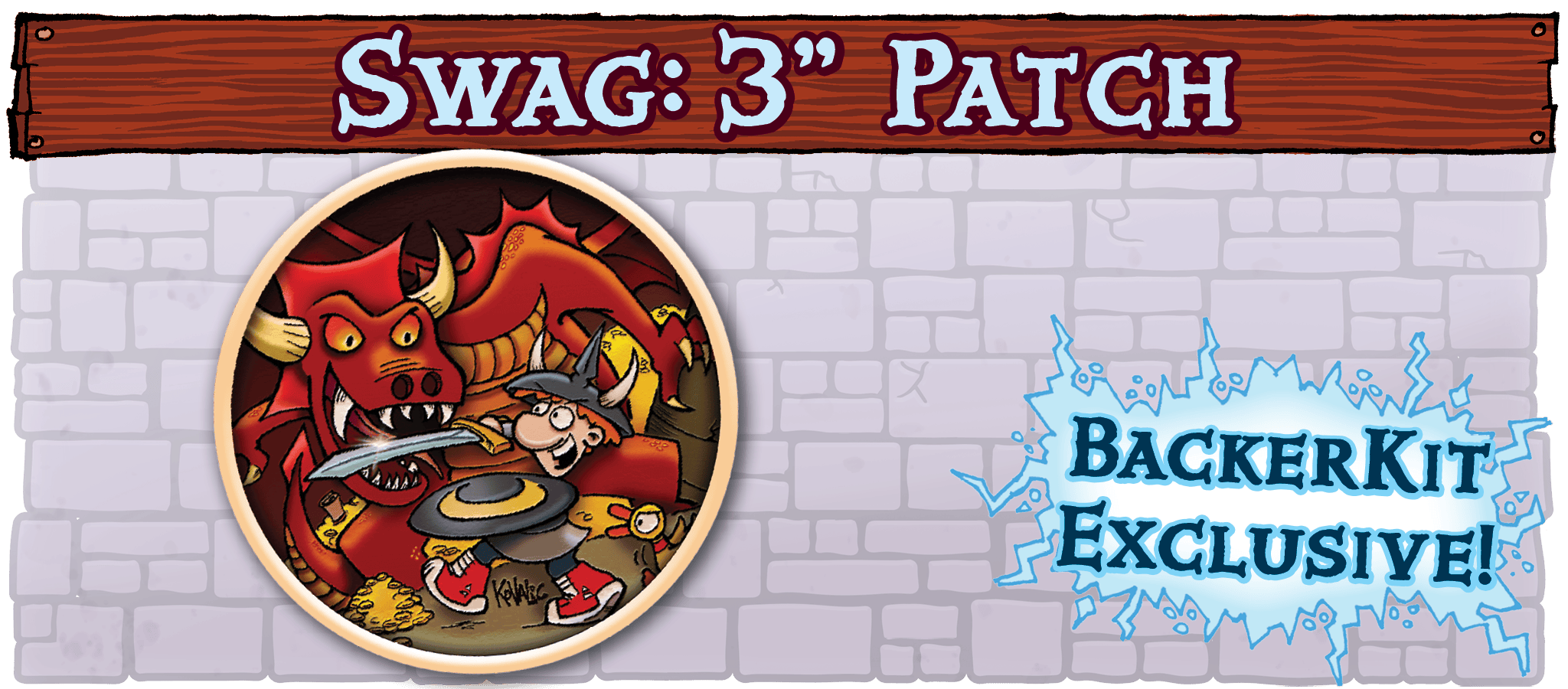 GOAL: $330,000 – Have you learned how to sew? You have some time before this 3” canvas patch arrives. This reward is ONLY for Munchkin Big Box backers. It may be available as a campaign add-on, or it may not, but all backers will get it free, and it will not be in the Big Box sold at retail.