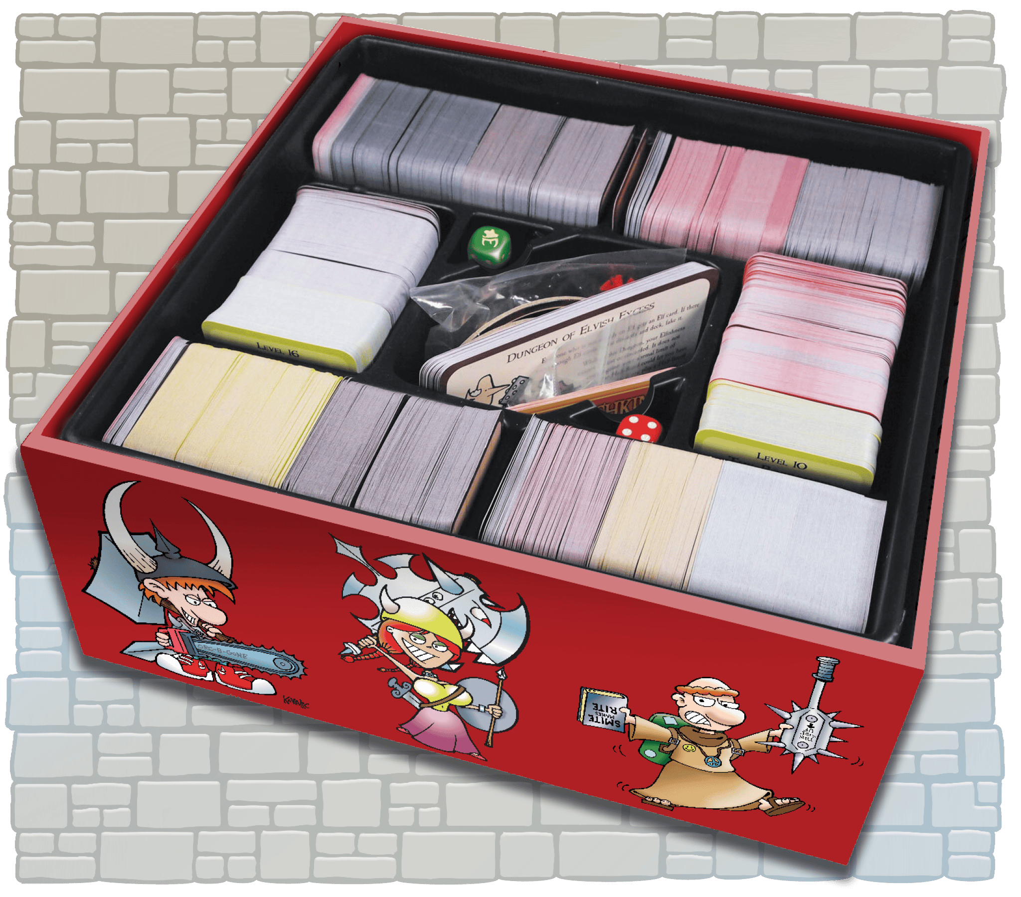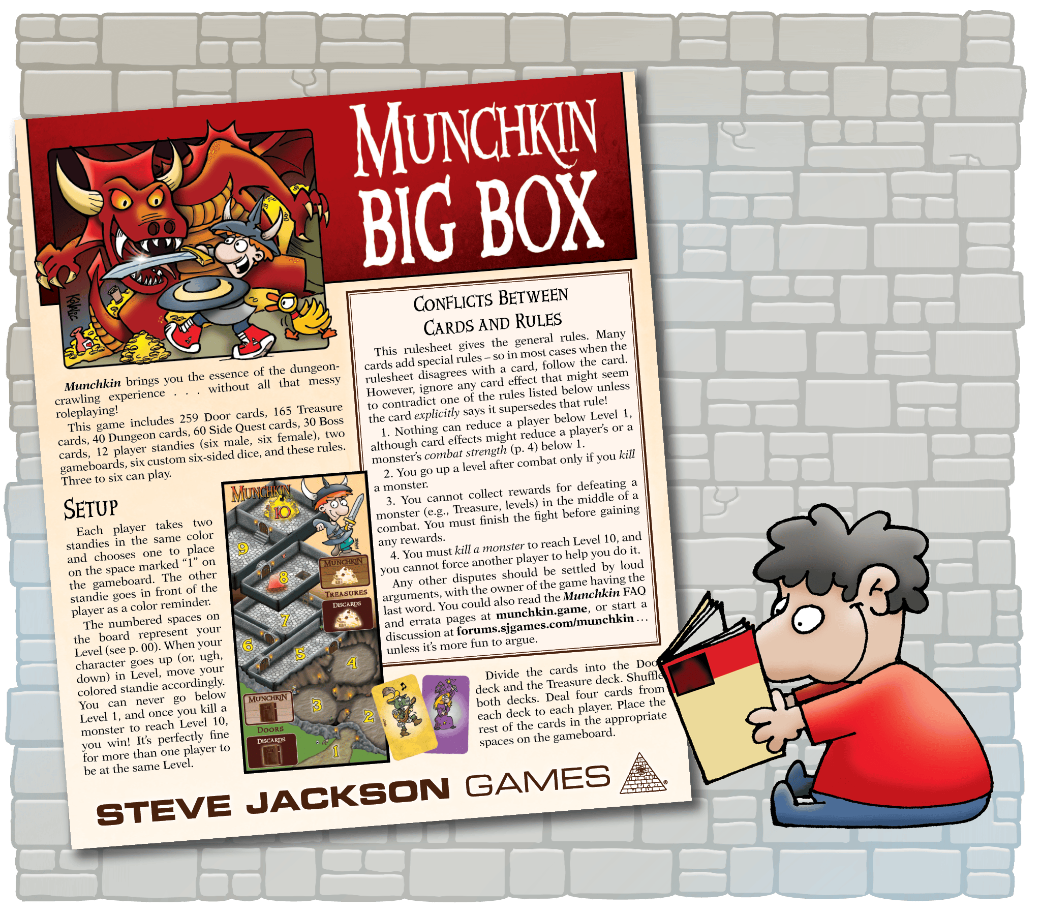 What else sets Munchkin Big Box apart? How about the box itself? Designed to hold over 2,000 cards, plus gameboards and other accessories, this commodious coffer is the perfect place to store your Munchkin gear.