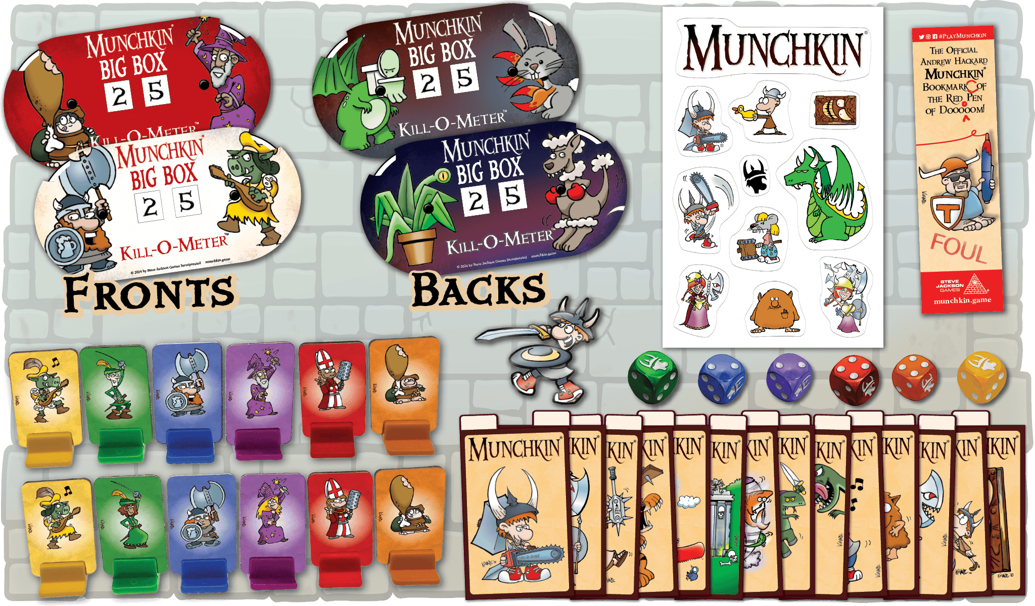 • Bookmarks! You like bookmarks! The Big Box includes the commemorative bookmark for Andrew Hackard, the “Red Pen of Doom,” our lost and lamented MunchkinCzar, who did so much to make this game the terrible and wonderful thing that it is. If the campaign goes well, there will be more bookmarks. Andrew would approve!