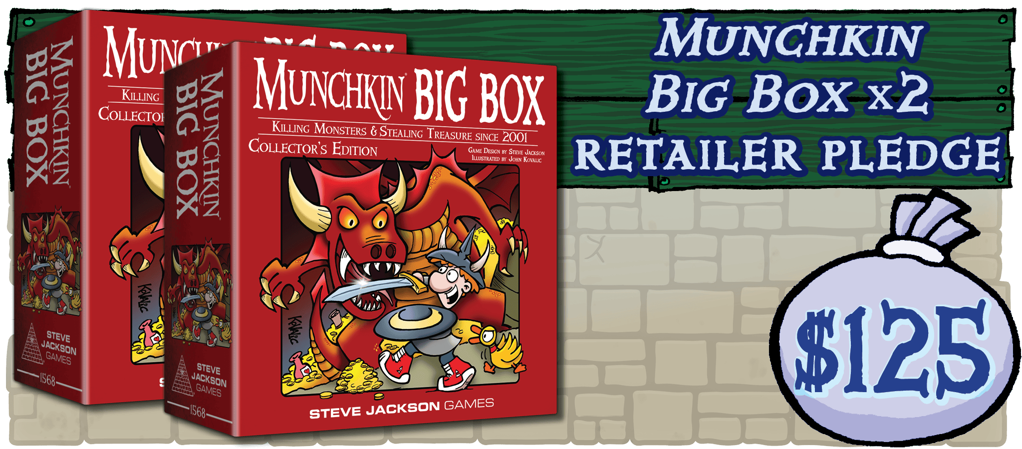 Munchkin Big Box is the ultimate collector’s edition. It's packed with over 650 cards, all illustrated by John Kovalic. (If you like Dork Tower, Chez Geek, or Kobolds Ate My Baby!, then you’re a fan of John’s work!)