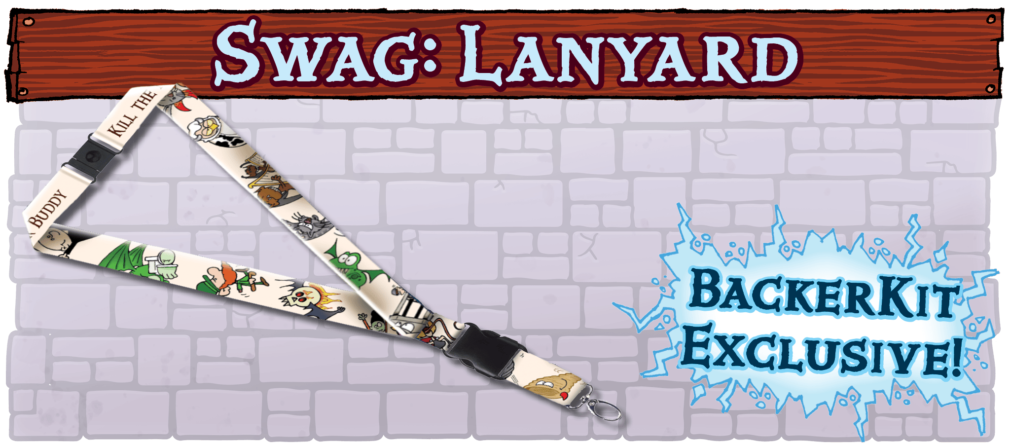 GOAL: $225,000 – The perfect item to affix your shiny enamel pins to! This super swanky, deluxe wide lanyard is everything you've ever wanted a lanyard to be. This reward is ONLY for Munchkin Big Box backers. It may be available as a campaign add-on, or it may not, but all backers will get it free, and it will not be in the Big Box sold at retail.