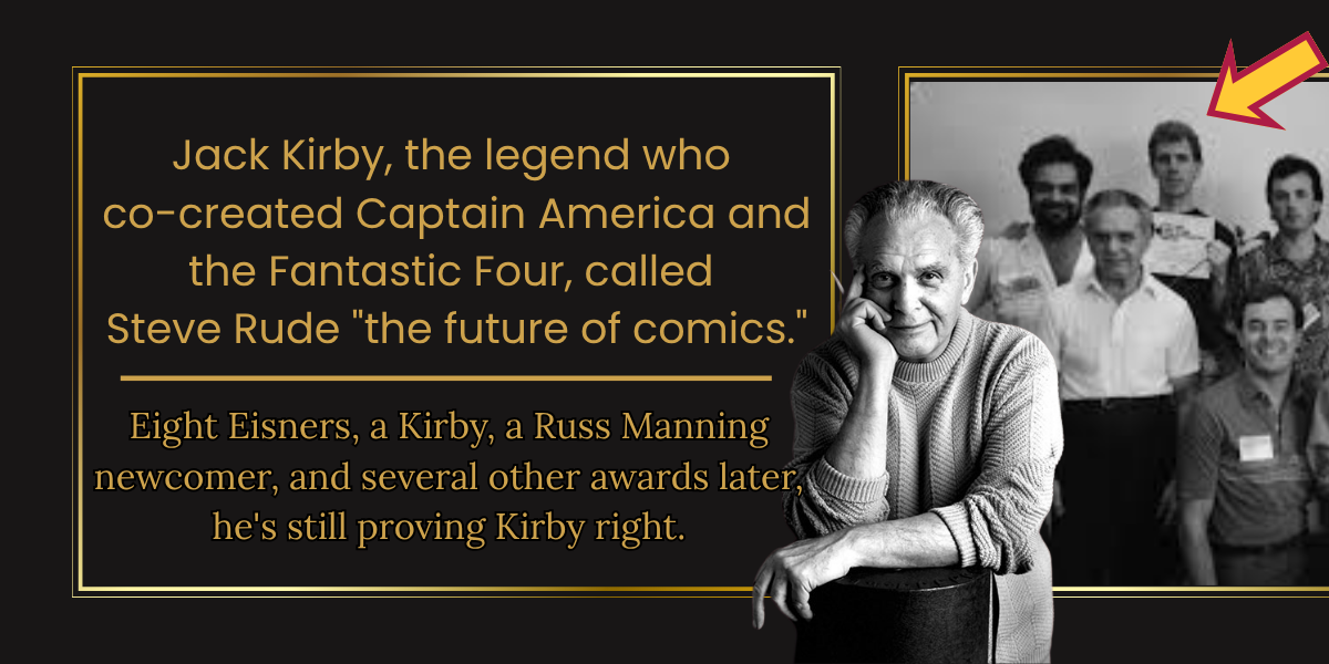 Want to stay connected year-round? For $5/month on Patreon, you get access to Steve’s archives, hi-res scans of rare and unpublished art, monthly wallpapers, Saturday livestream references, and a seat in the Rude Dude Discord. It’s the studio, minus the commute. patreon.com/steverude