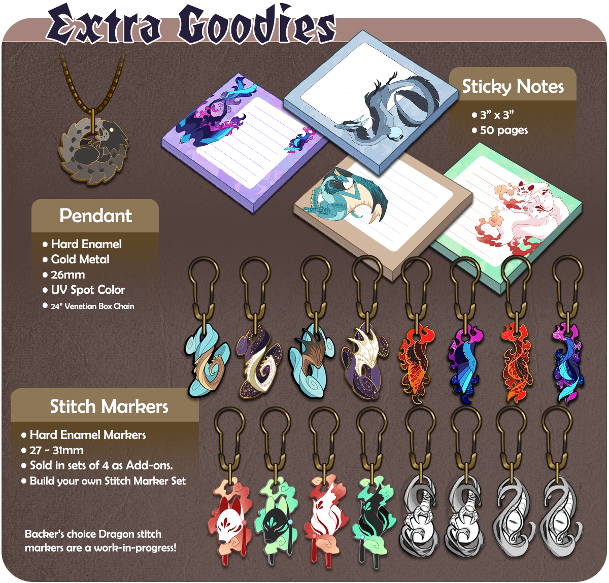 Dragon Hoard Keepers is a campaign to create a huggable 7" companion plush designed to safely stow your favorite trinkets, tokens, coins, and other polyhedral treasures! There's even a mini version of this charming plush friend! In addition, hobby-hoarders can celebrate their love of collecting their favorite things through dragon hoard enamel pins. These dragon collectors hoard their favorite dice, yarn, potions, and more!