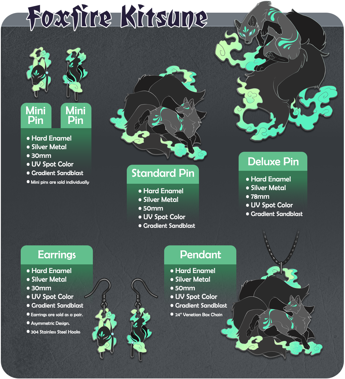 This series of pins consists of several themed sets. Each set will have one large, deluxe pin featuring a full-body mythical creature surrounded by elemental energy, a standard sized pin of the mythic creature, mini pins with complimentary elemental decoration, a pair of earrings, and a pendant necklace. Our initial funding goal will allow the production of the Wyvern Wind and Phoenix Fire pin set, with the possibility of unlocking additional elemental creature sets if certain stretch goal funding thresholds are met!