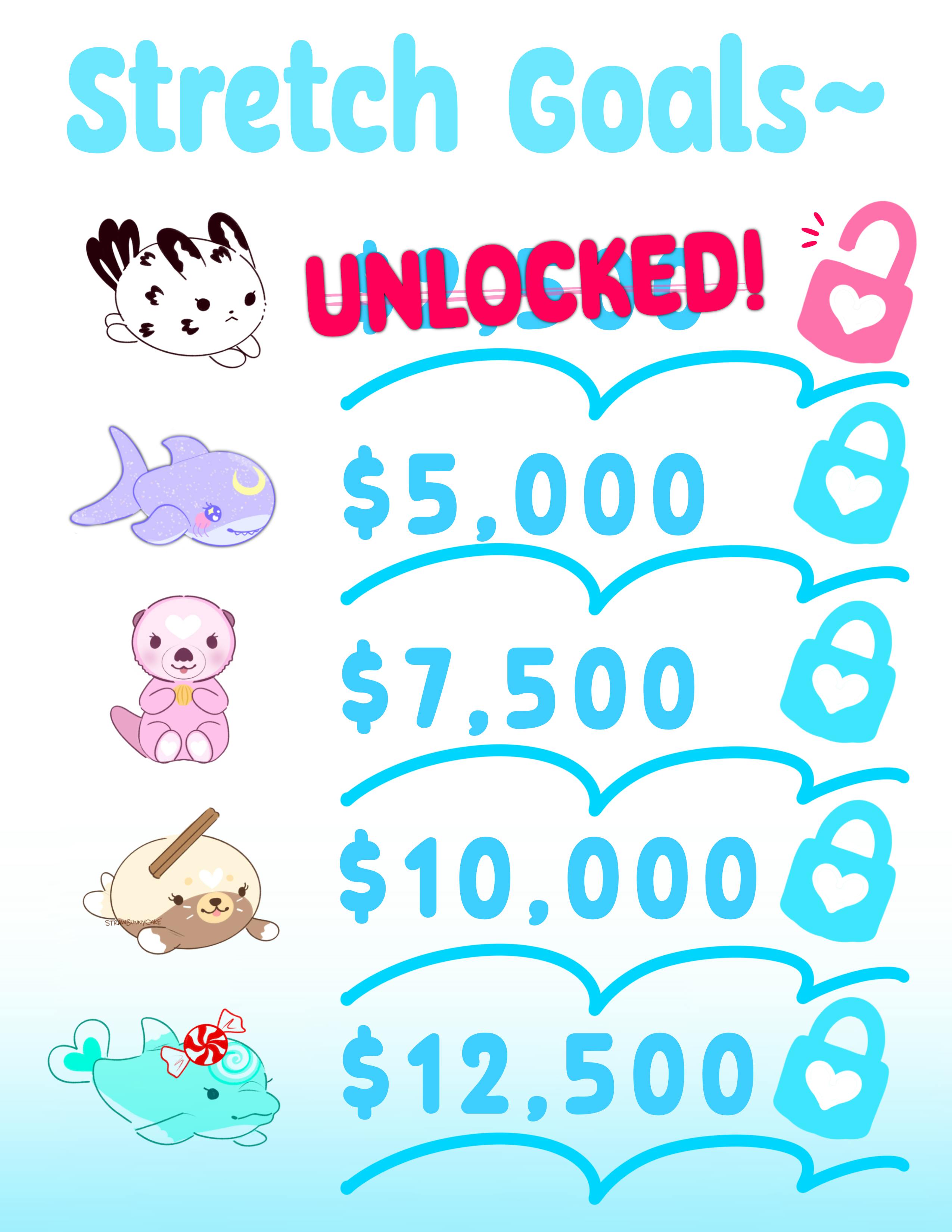 The main, initial goal, is $2,500 for this project, with Pepper the sea bunny being the first plushie reward! If we can reach $2,500 in total, the project is officially funded at that point and Pepper the sea bunny will officially happen!