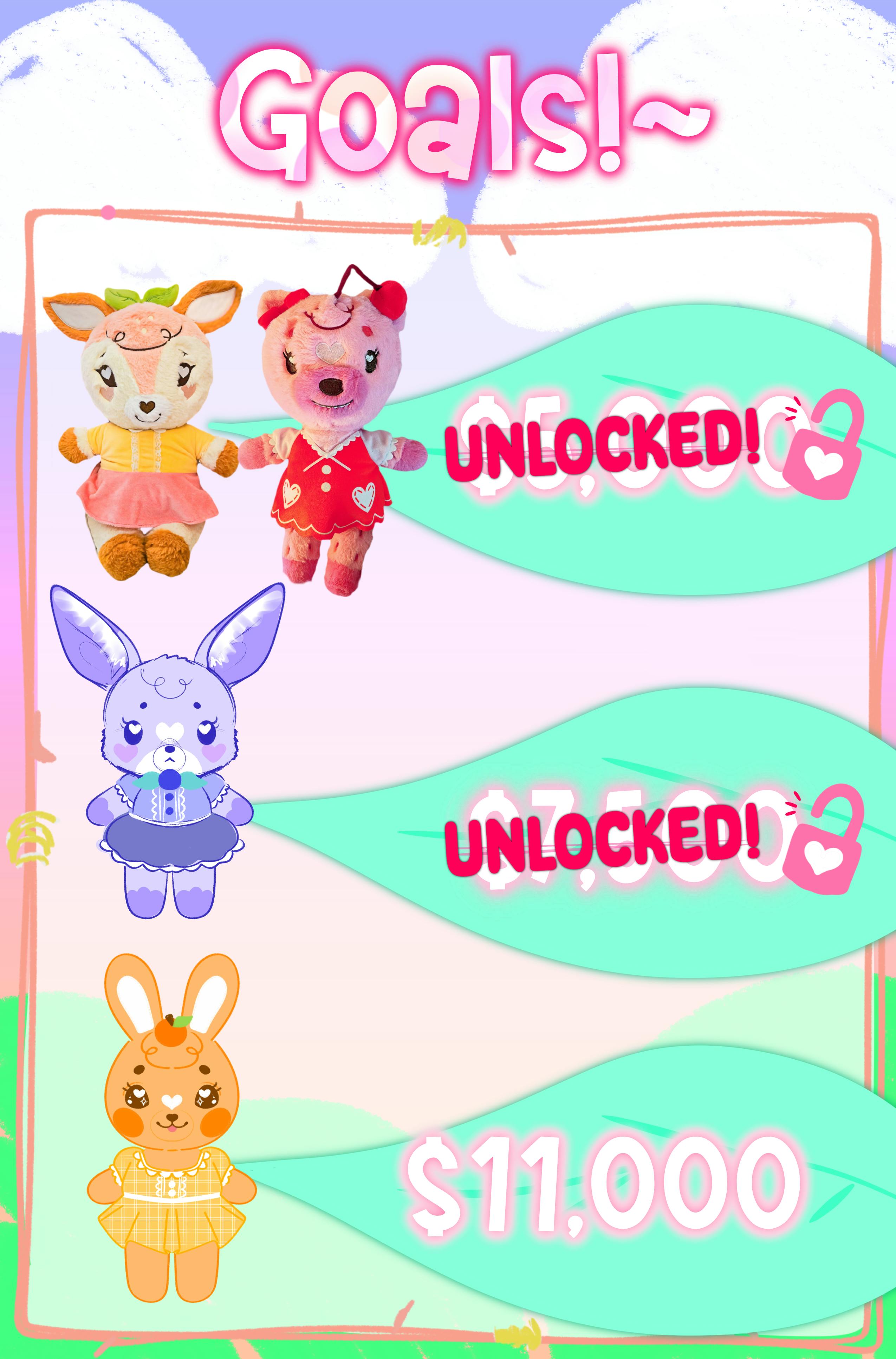 late April 2026 - secure the plushie bulk and smaller ticket goodies after tallying the inventory count for everything, including add-ons from backers after the project ends
