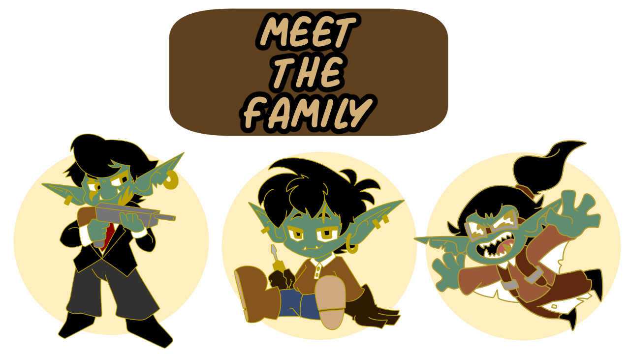 The Carnifex crime family of goblins is a fearsome sight to behold, with a fleet of menacing airships that soar through the skies and leave a trail of chaos in their wake. And now you can have a set of pins that depict some of the Carnifex family's most cutthroat members!