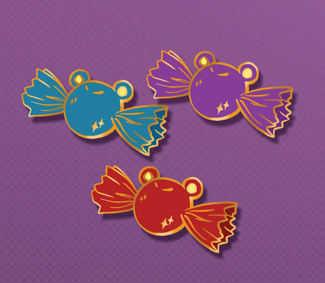 For possible stretch goals I'm thinking of offering different colour ways of the freebie mini pin as board fillers. The Floris round wrapped candy in 3 different colours than the freebie. Think of red or blue or yellow or purple, no colours set in stone yet but If we go passed the €2000 goal I'd like to work on that possible stretch goal!