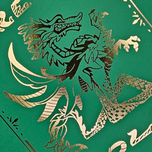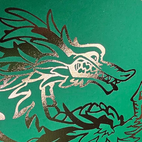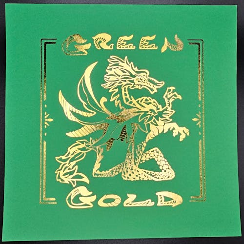 These pieces I made by hand after... so much trial and error, y'all. But I've hopefully learned enough to make future foil prints less of a headache. They're a pale gold foil with a "frosted" texture on clover green cardstock cut to 8x8inches, and will be signed and numbered for this limited run. While I am likely to use the GBD graphic again on foil or something (another shirt?), the text will be different, I won't be using the frosted foil effect, and I'm unlikely to use this combination of the paper and foil, because they should be a truly distinct edition from just a glance.
