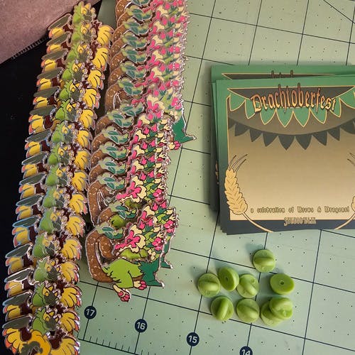 I'm over halfway through grading the latest batch pins and have carded about half of that. Enough right now to get me through fulfillment on Stout, Amber Ale, and shields. Carding continues on the collab pins. I haven't gotten to the mini mugs yet. Due to there being three variants and how varied folks orders are, I'm going to wait until I'm packing orders so I can back as-I-go. I will take some photos and get those posted with the first wave or two, plus include photos of the normal variant Stout, Amber Ale, and the Rampant Marzen shield.