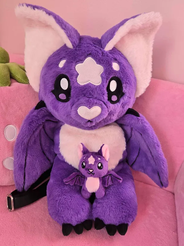 Her ears are a bit foxy, so here's the edit I gave my manu: Next up, here's Taffy! She's actually finished,except for the fur on the end of her paws, that is being changed to minky to match her toes. but I will have better photos once I receive her: Finally, I did receive the Berry hoodie! I haven't had proper time to do a try on, I will and will get videos this week, but here's some photos to see the color in better lighting. I actually really like the purple, and it's similar enough to both the backpack and the original plush: