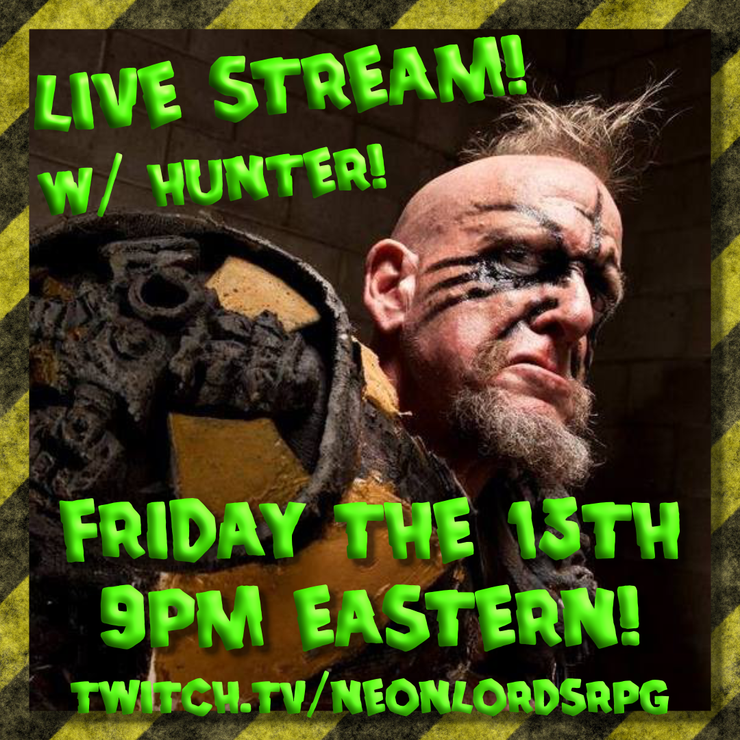 Come hang out this Friday the 13th with Hunter and me here on the Backerkit page!!! OR come hang at the Twitch channel, either way, it's going to be a blast! Feel free to ask questions! We are going on to answer all that you may have! I am looking forward to this one, and I hope to see you there!!